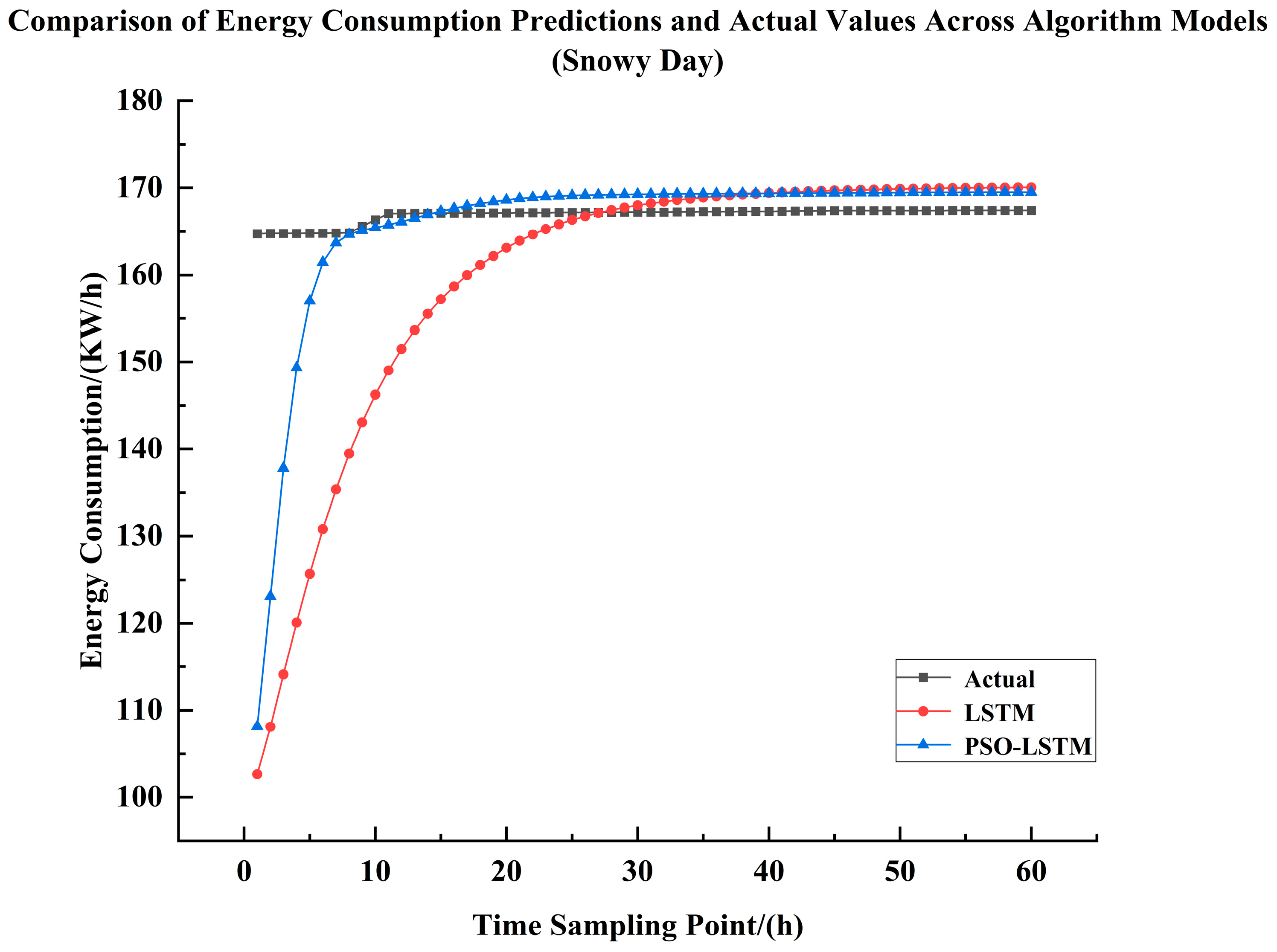 Table 18, similarly demonstrate that after predicting energy consumption of the same 194 sample points, the PSO-LSTM model exhibits significantly superior prediction errors and model evaluation metrics compared to the LSTM model. The PSO-optimized LSTM achieves improvement rates ranging from a maximum of 58.45% to a minimum of 49.38% across all metrics. This demonstrates that the PSO algorithm significantly enhances the system energy consumption prediction capabilities of the LSTM model.