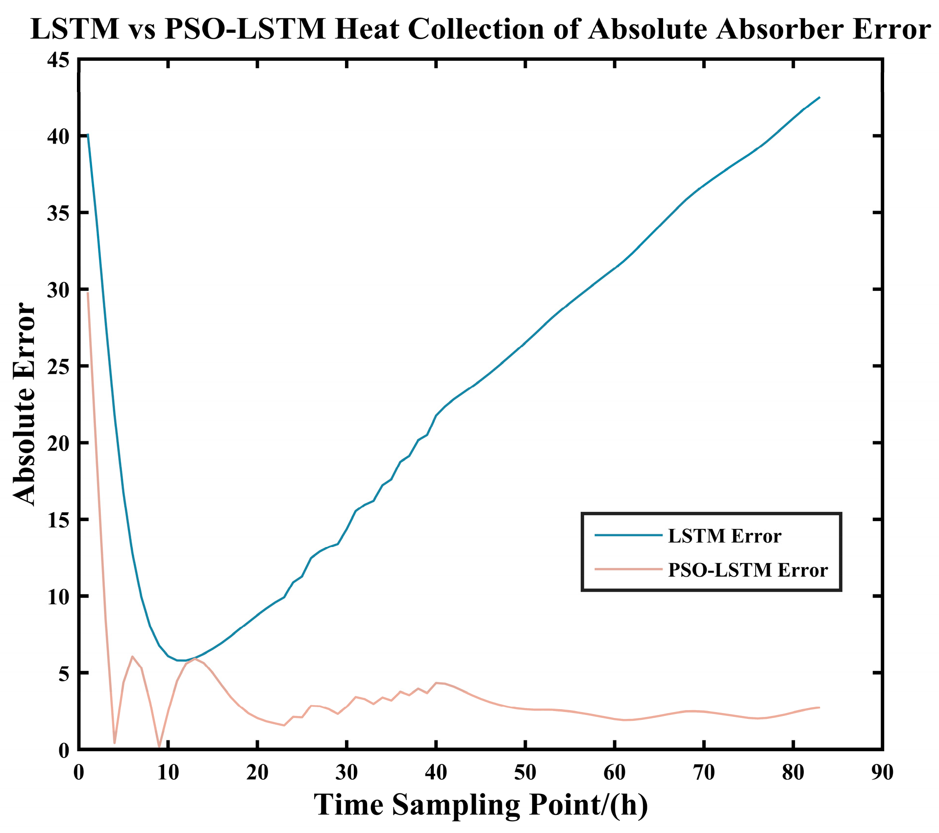 Table 16, after predicting the solar collection heat for the same 166 sample points, the PSO-LSTM model demonstrated significantly superior prediction error and model evaluation metrics compared to the LSTM model. The PSO-optimized LSTM achieved improvement rates of up to 84.87% for all metrics, with the minimum improvement rate reaching 69.41%. This demonstrates that the PSO algorithm significantly enhances the solar heat collection prediction capabilities of the LSTM model.