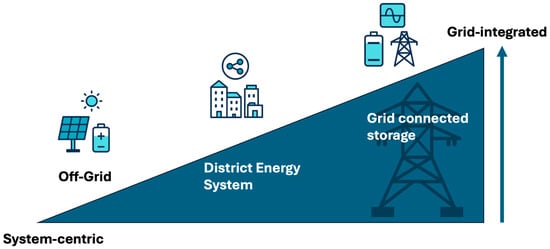 This study focuses on grid-connected, distributed, long-duration energy storage systems, including district energy systems that provide additional services to the distribution grid. Off-grid systems, or district energy systems with no grid access are excluded, since the technical and socio-economic motivations driving the deployment of off-grid storage—such as the absence of a central grid, rural electrification objectives, or islanded microgrids—differ fundamentally from those influencing grid-connected contexts.