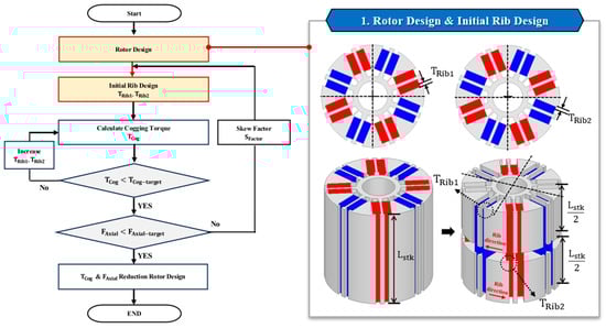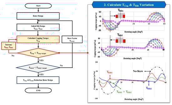 Design process for cogging torque evaluation and rib adjustment.