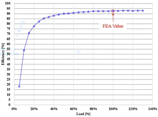 Load–efficiency characteristics of the motor prototype.