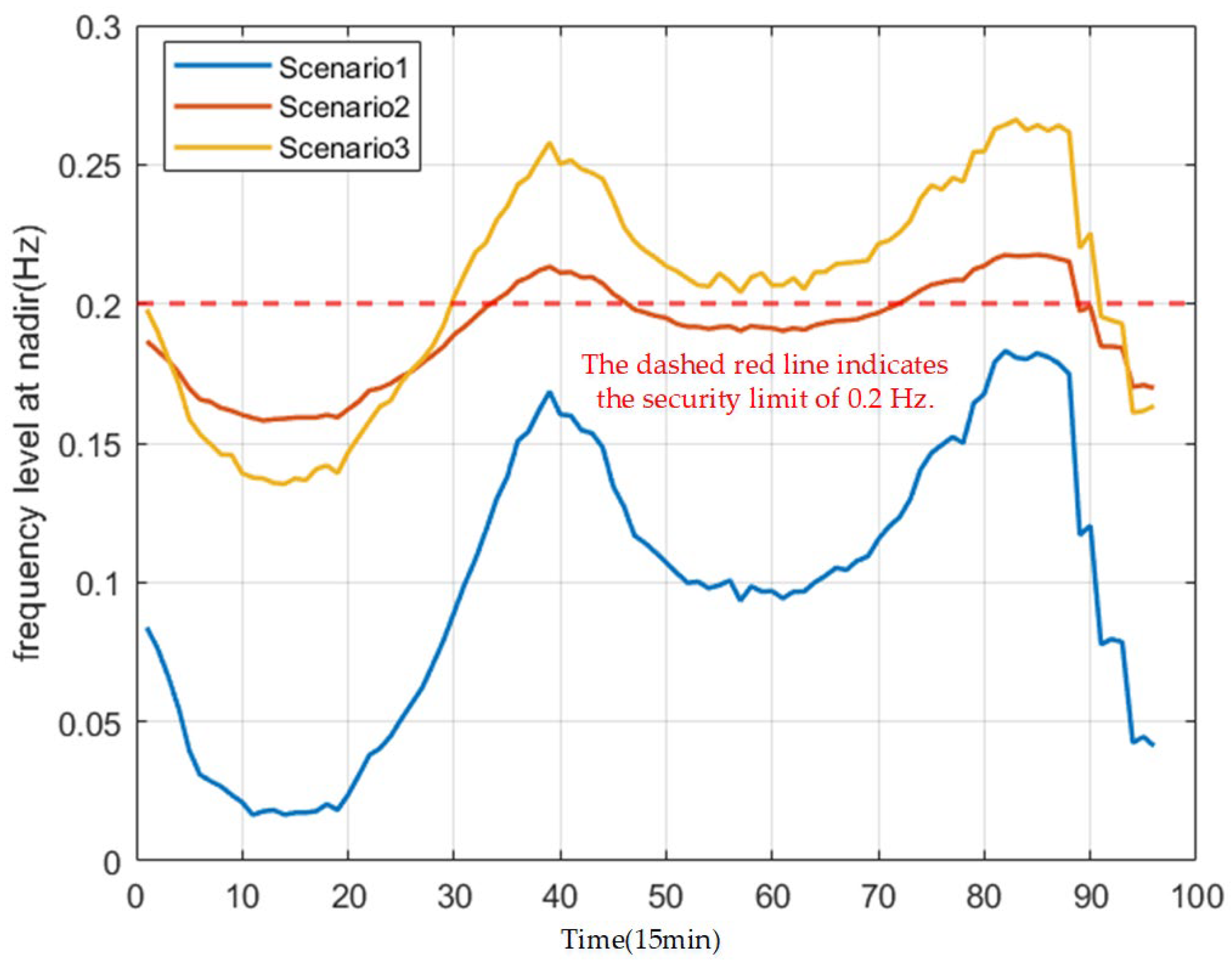 (2) The case study provides quantitative evidence of the method’s efficacy. Compared to a traditional dispatch that ignores FM delays, the proposed model reduces the average frequency nadir by 0.092 Hz and the average RoCoF by 0.048 Hz/s, while increasing the peak-shaving cost by merely 4%. This demonstrates a favorable trade-off where substantial gains in frequency security are achieved at a modest economic cost.