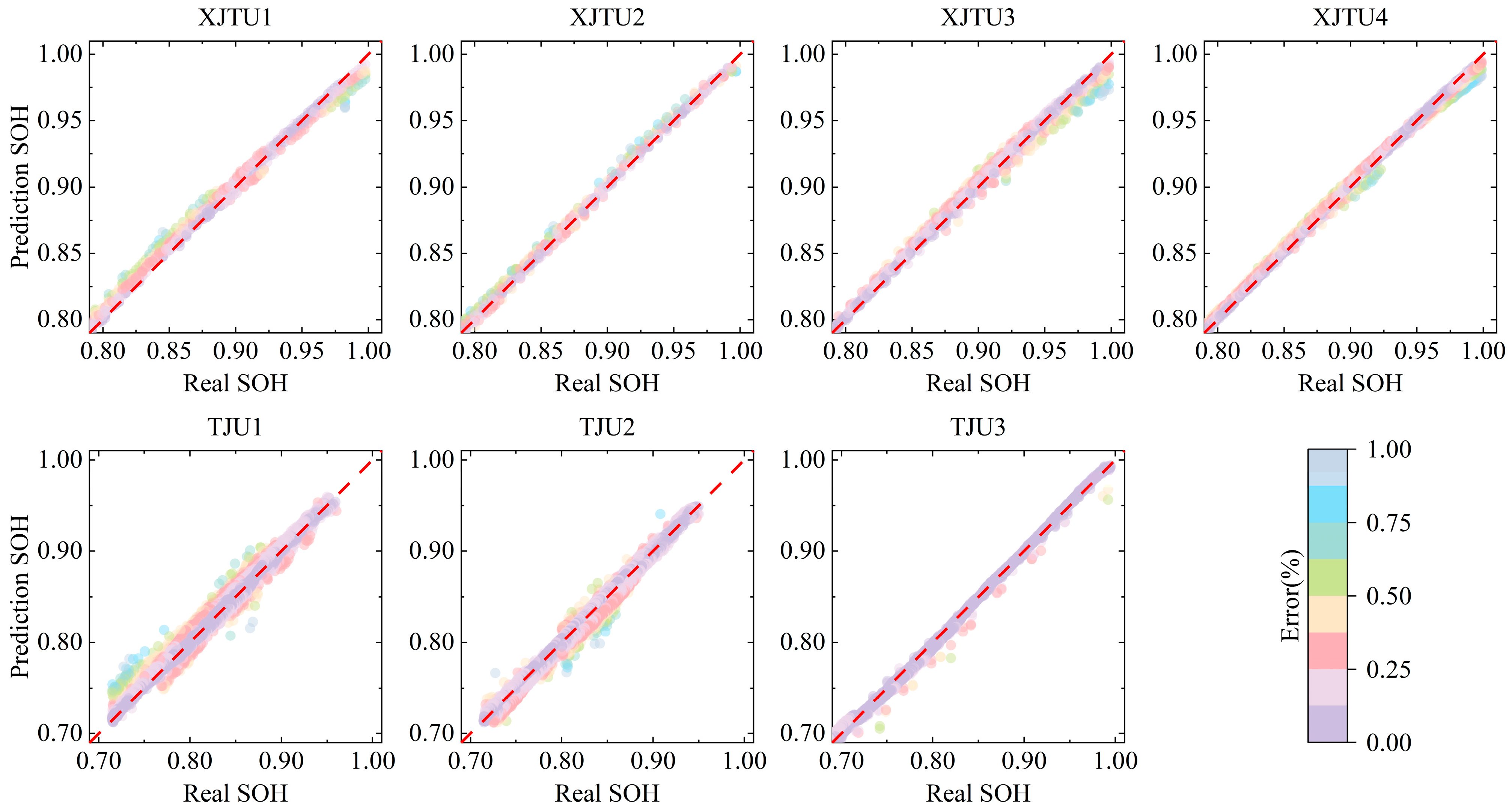 To encompass various charging–discharging strategies and states of charge, this study employs two publicly available datasets collected from different institutions: the Xi’an Jiaotong University (XJTU) dataset and the Tongji University (TJU) dataset [