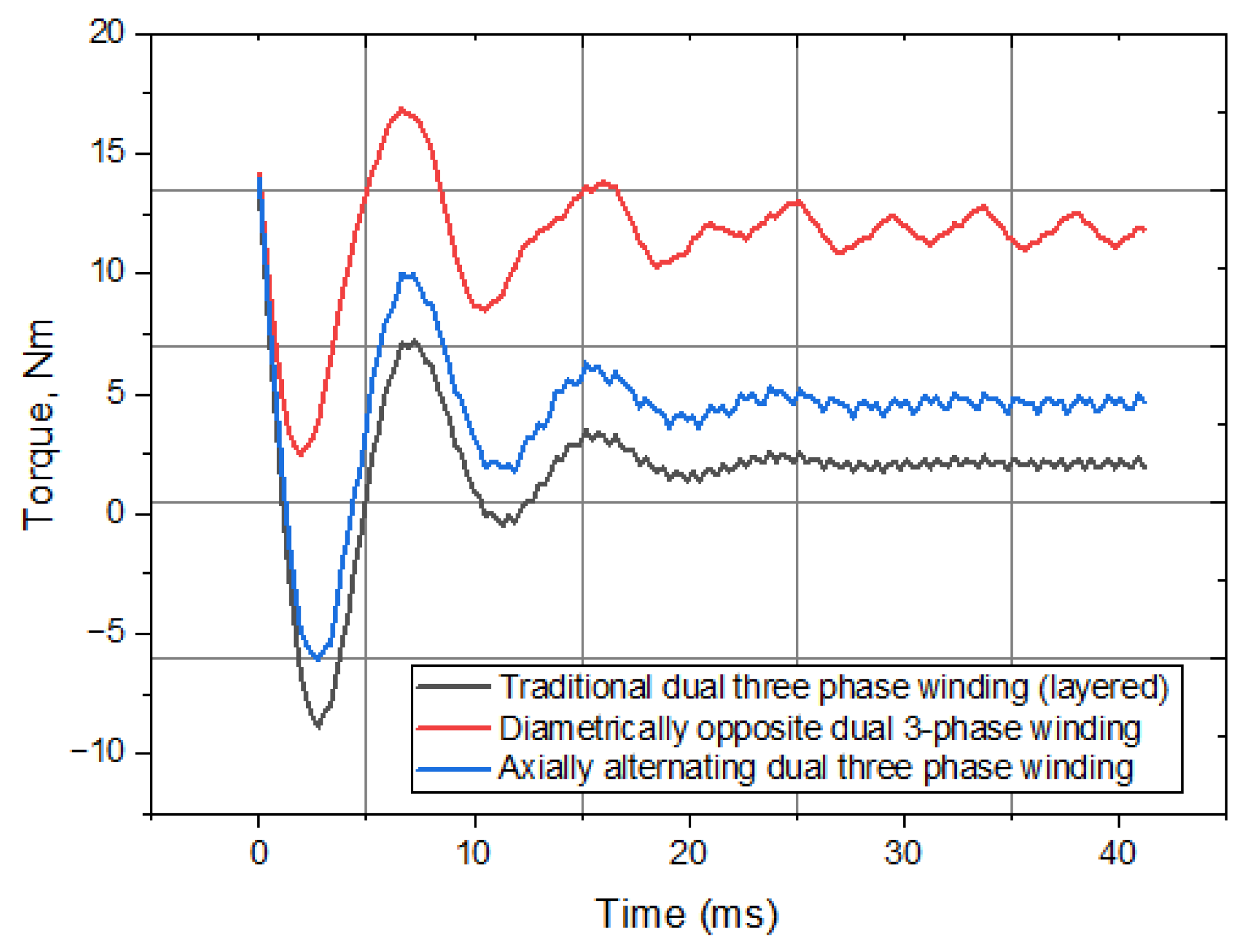 - There is no phase shift between the two stator sets.