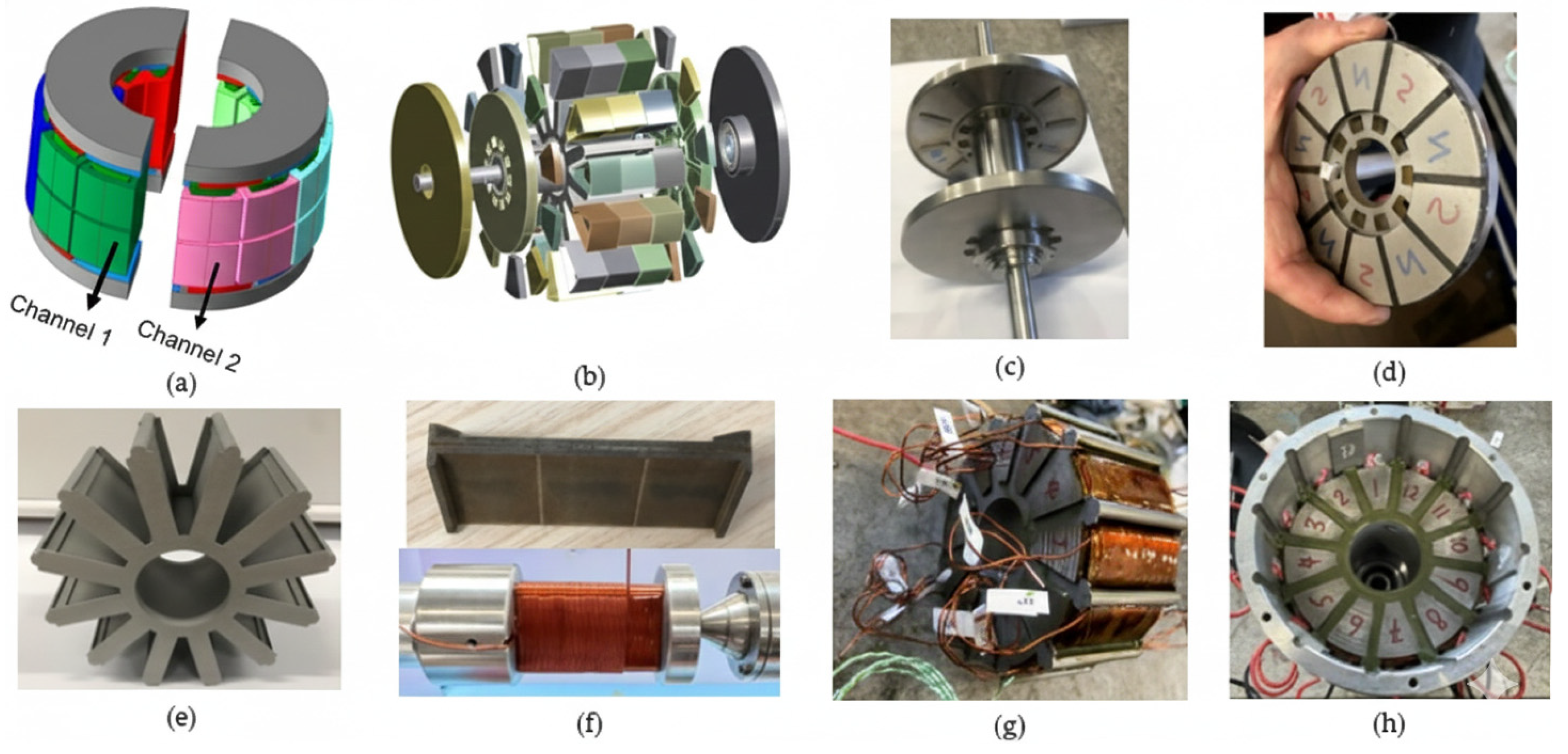 - Kulan, M.C.; Baker, N.J. Design and Construction of a Fault-Tolerant Yokeless and Segmented Armature Axial Flux Motor for Aerospace Actuator Applications. In Proceedings of the 2025 IEEE International Electric Machines & Drives Conference (IEMDC), Houston, TX, USA, 18–21 May 2025; IEEE: Piscataway, NJ, USA, 2025; pp. 176–181. [Google Scholar]