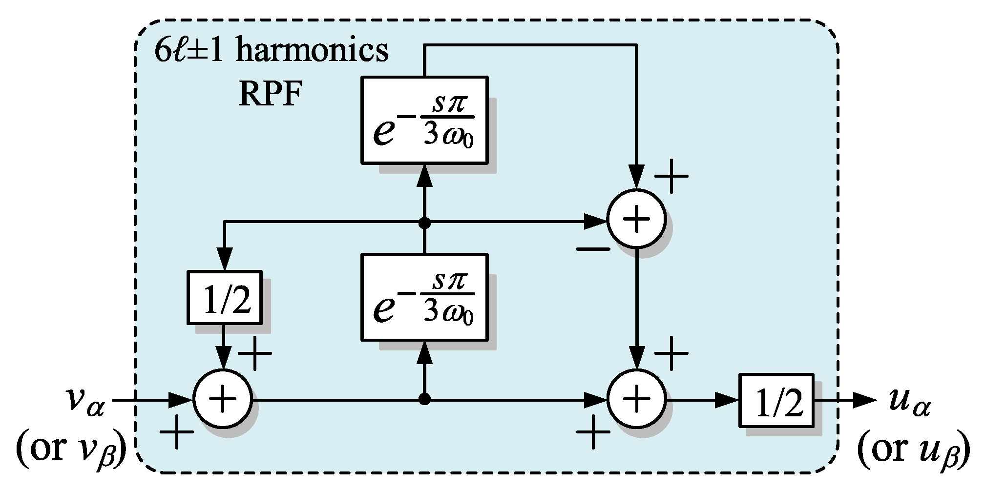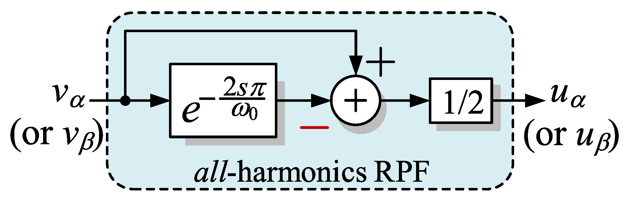 - Zhao, Q.; Zhang, H.; Gao, Y.; Chen, S.; Wang, Y. Novel Fractional-Order Repetitive Controller Based on Thiran IIR Filter for Grid-Connected Inverters. IEEE Access 2022, 10, 82015–82024. [Google Scholar] [CrossRef]