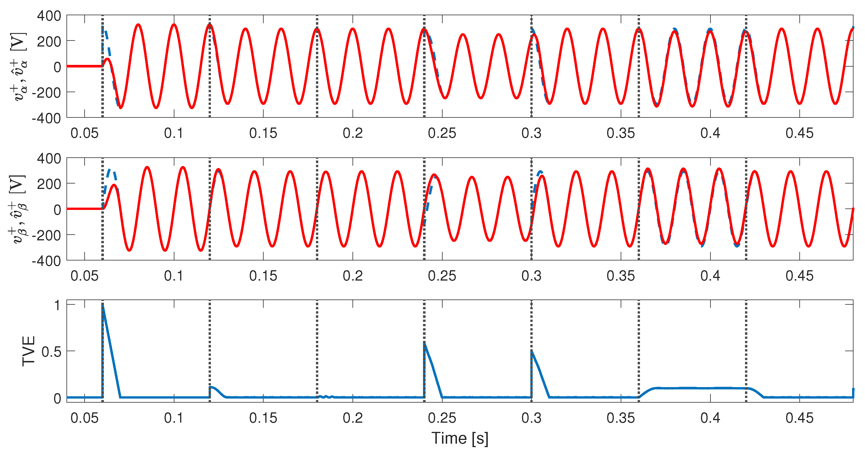 - Ibarra, L.; Escobar, G.; Catzin-Contreras, G.A. Assessment of the DSC Technique for Positive-Sequence Extraction in Power Systems. IEEE Trans. Ind. Electron. 2025, 72, 8533–8539. [Google Scholar] [CrossRef]