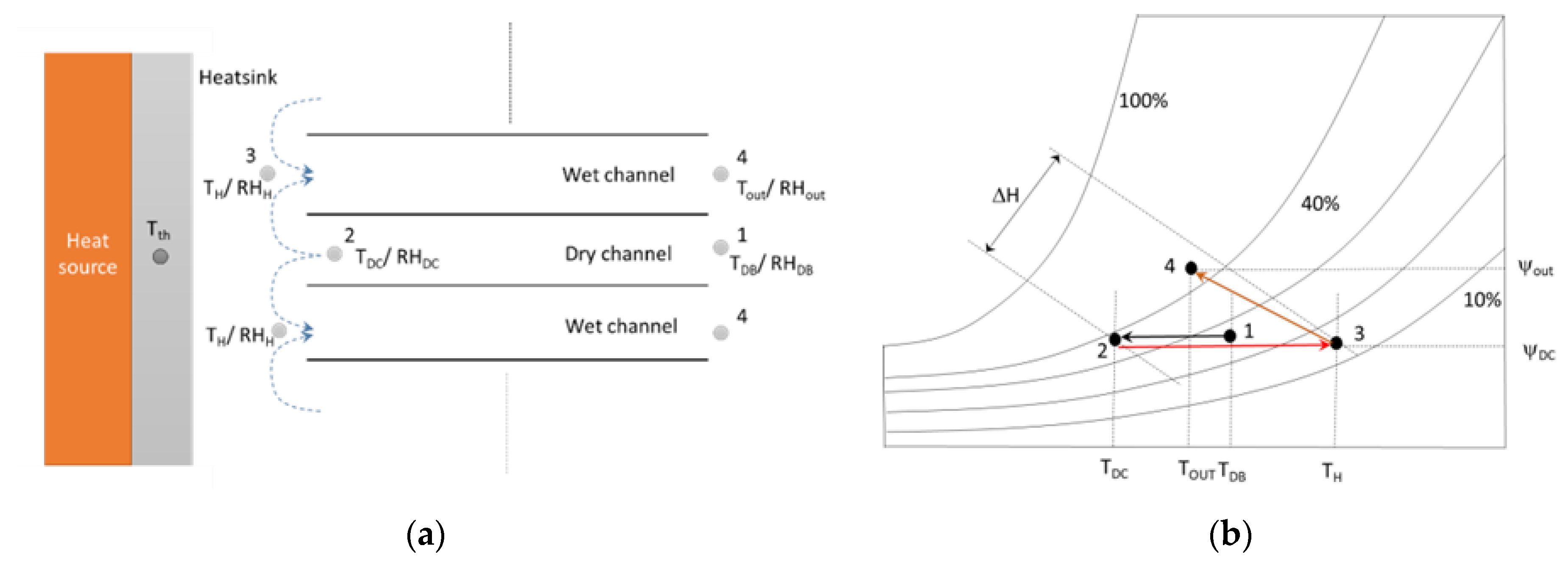 - Zhu, G.; Wen, T.; Wang, Q.; Xu, X. A review of dew-point evaporative cooling: Recent advances and future development. Appl. Energy 2022, 312, 118785. [Google Scholar] [CrossRef]
