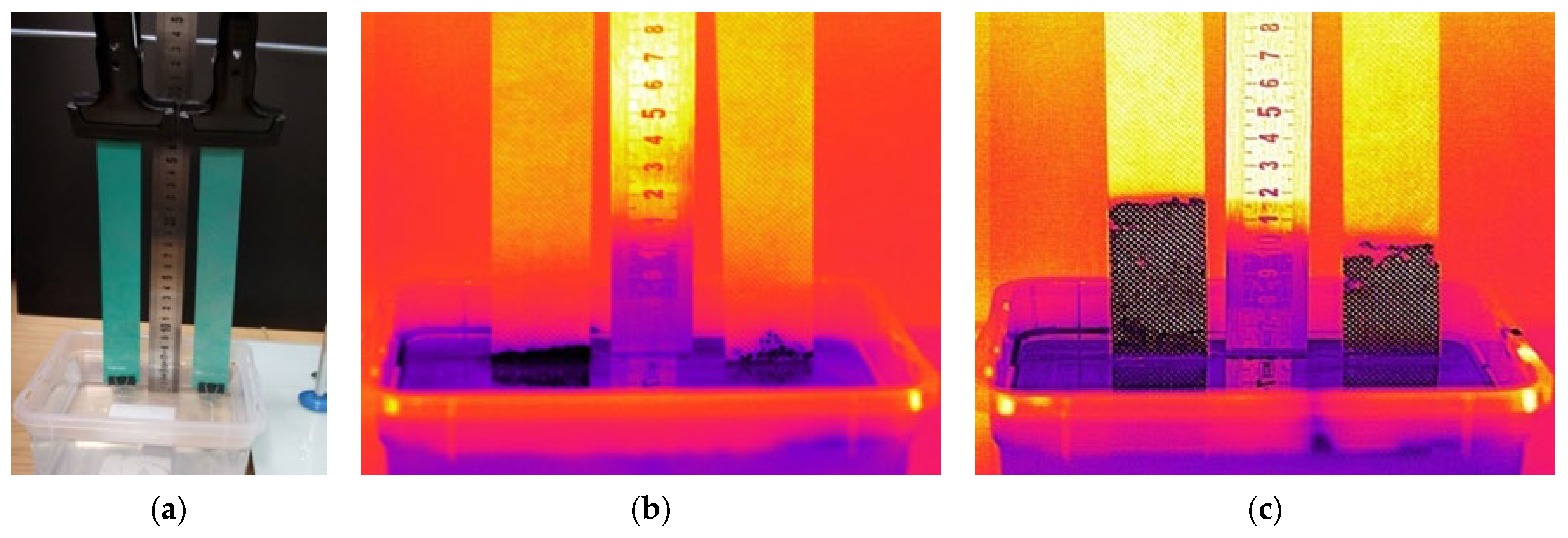 - American Association of Textile Chemists and Colorists (AATCC). Technical Manual, Test Method for Vertical Wicking of Textiles (TM-197); AATCC: Durham, NC, USA, 2022. [Google Scholar]