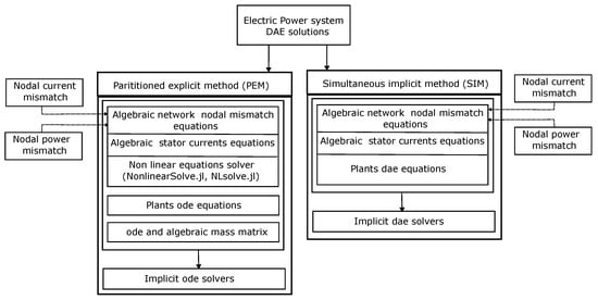 In general, DAE can be solved through two sets of approaches: (i) the simultaneous-implicit method (SIM), and (ii) the partitioned-explicit method (PEM). Figure 1 depicts the formulation of DAE for an electric power system. In addition, the figure illustrates subunits that are essential to modelling and solving DAE specifically for an electric power system.