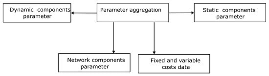 The parameters aggregation subunit is responsible for extracting appropriate parameters from components that are used in specific models. The parameters are subsequently organised in data structures in conjunction with an indexing subunit. The creation of parameters for a model is shown in Figure 5.