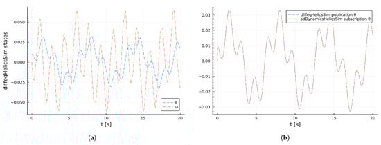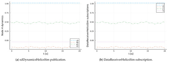 Figure 18a depicts the states of diffeqHelicsSim federate, while Figure 18b depicts the published data from diffeqHelicsSim federate and the subscription data by sdDynamicsHelicsSim. It is evident from Figure 18b that there is no difference between the value of what is published by diffeqHelicsSim and what is received by sdDynamicsHelicsSim.