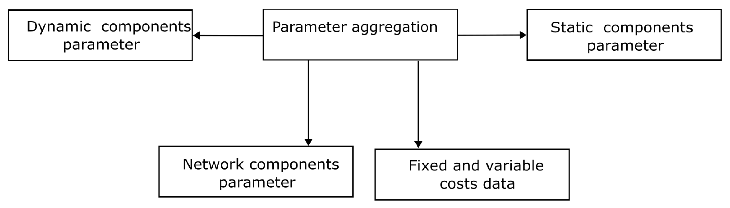 The parameters aggregation subunit is responsible for extracting appropriate parameters from components that are used in specific models. The parameters are subsequently organised in data structures in conjunction with an indexing subunit. The creation of parameters for a model is shown in