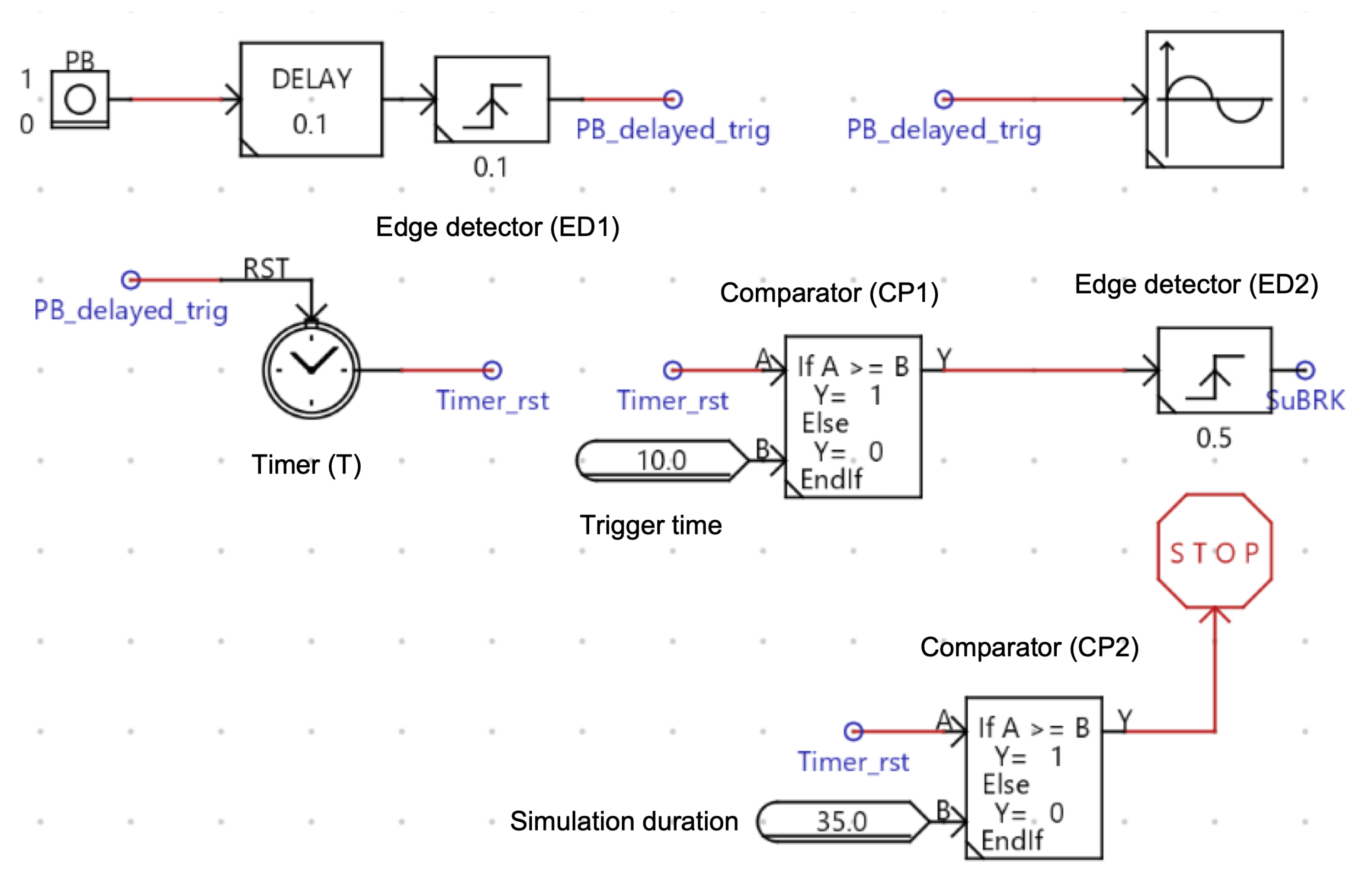 Figure 8 triggers a close event of a circuit breaker in RSCAD Draft interface. When a push on PB is detected by an edge detect