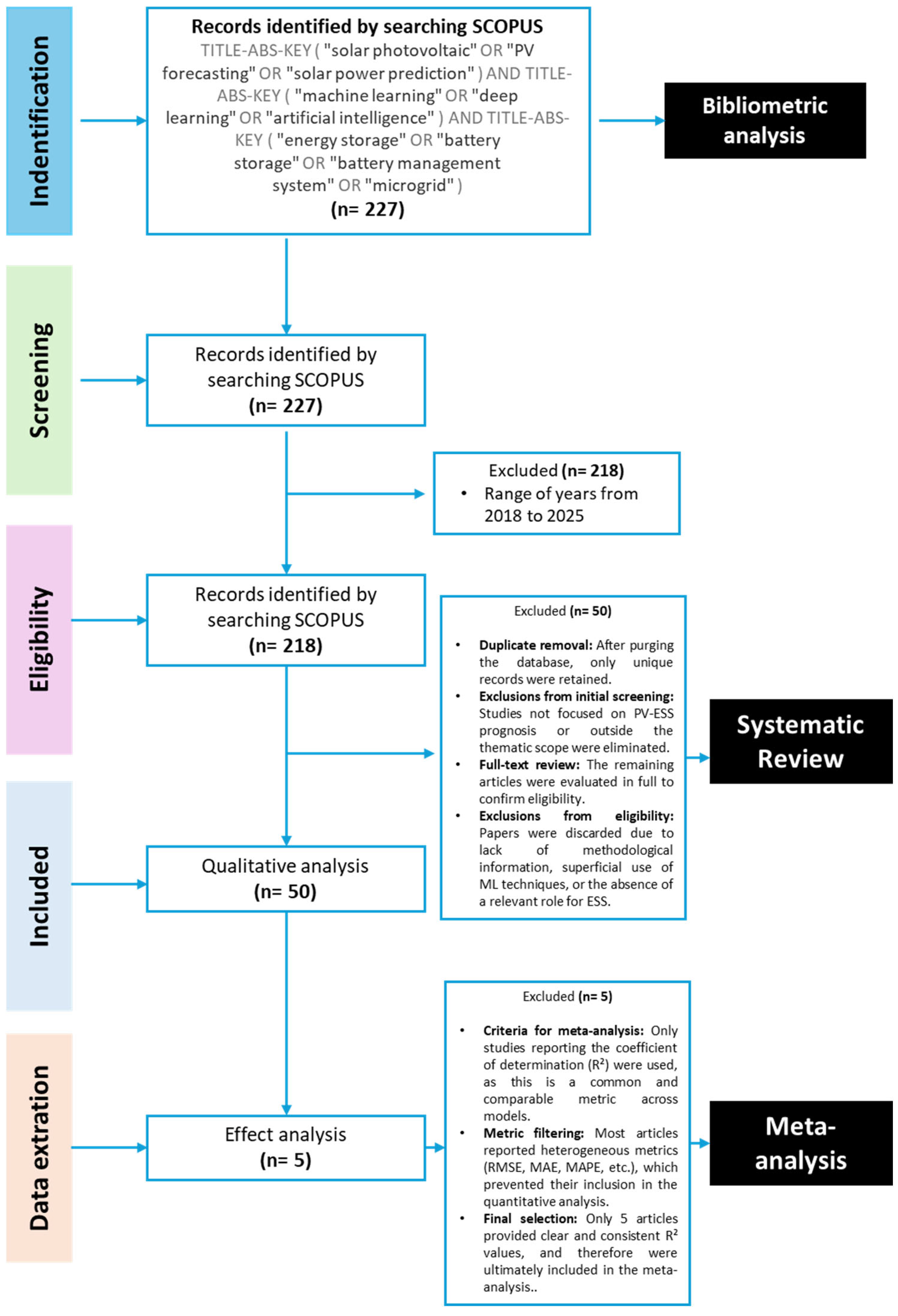 APA StyleRodriguez-Aburto, C., Montaño-Pisfil, J., Santos-Mejía, C., Morcillo-Valdivia, P., Solís-Farfán, R., Curay-Tribeño, J., Morales-Vargas, A., Vara-Sanchez, J., Gutierrez-Tirado, R., Vigo-Roldán, A., Vega-Ramos, J., Casazola-Cruz, O., Pilco-Nuñez, A., & Arroyo-Paz, A. (2025). Machine Learning for Photovoltaic Power Forecasting Integrated with Energy Storage Systems: A Scientometric Analysis, Systematic Review, and Meta-Analysis. Energies, 18(23), 6291. https://doi.org/10.3390/en18236291