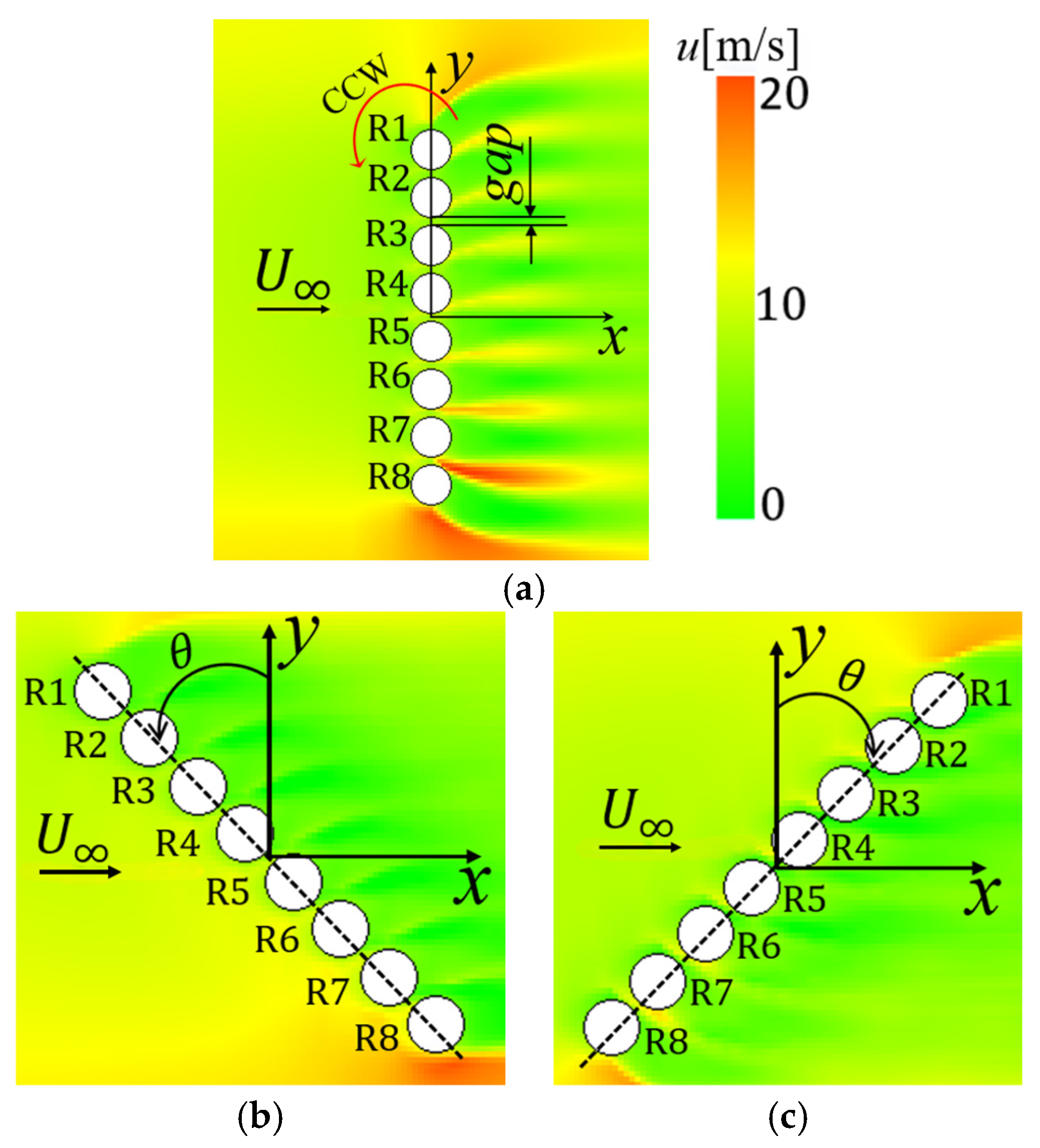 - Silva, J.E.; Danao, L.A.M.; Cluster, V.V.A.W.T. Varying VAWT cluster Configuration and the effect on individual rotor and overall cluster performance. Energies 2021, 14, 1567. [Google Scholar] [CrossRef]