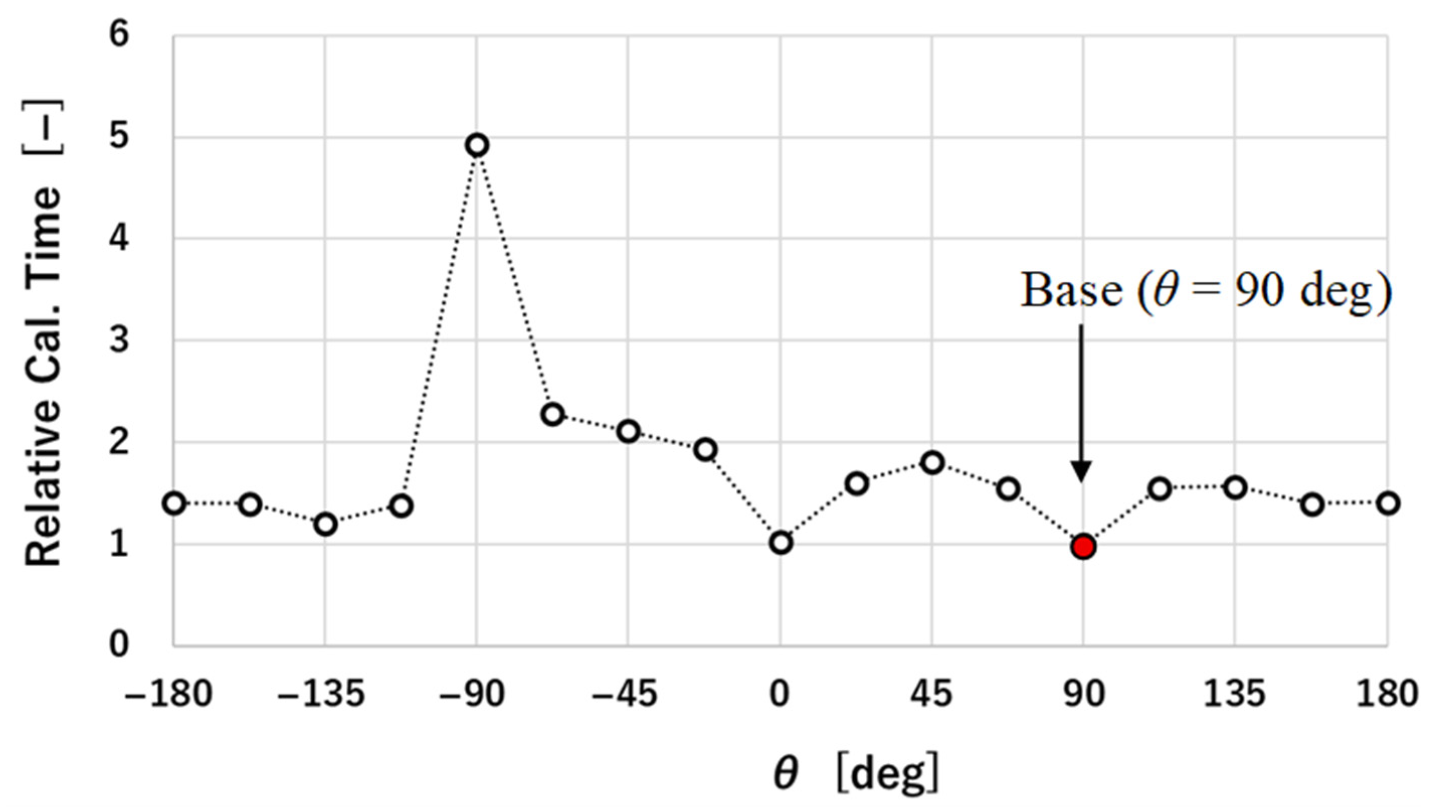 - The calculation order of the tandem layout of the eight rotors from the backward direction (from downstream to upstream) takes about five times as long as the calculation time from the forward order (from upstream to downstream).