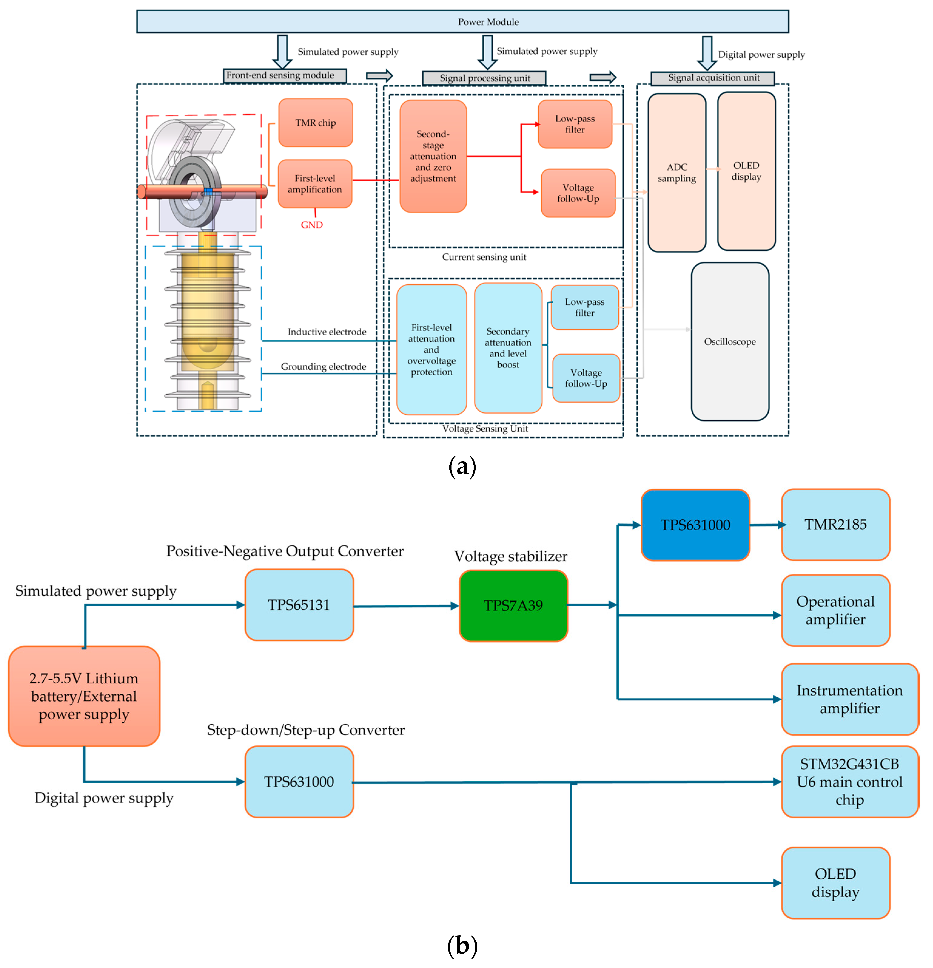 - Suo, C.; He, M.; Zhou, G.; Shi, X.; Tan, X.; Zhang, W. Research on Non-Invasive Floating Ground Voltage Measurement and Calibration Method. Electronics 2023, 12, 1858. [Google Scholar] [CrossRef]