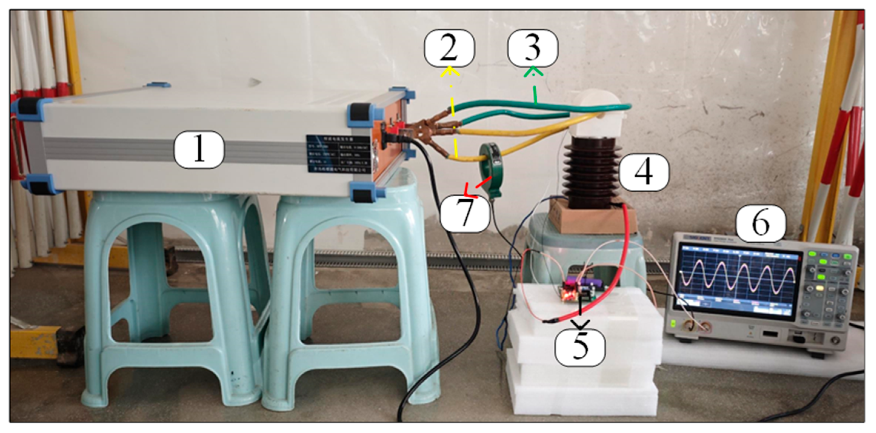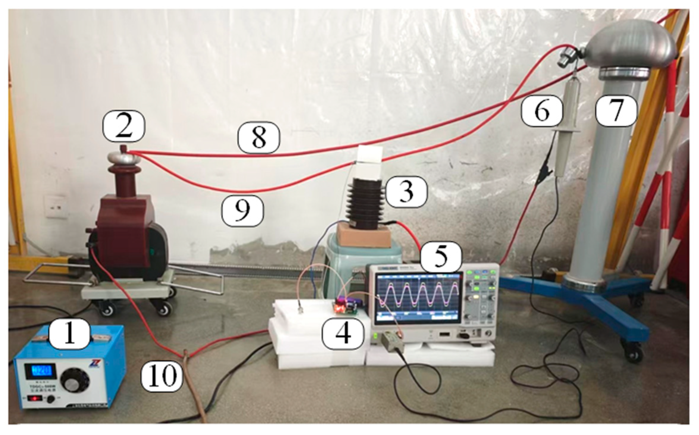 5.1. Power-Frequency Steady-State and Transient Characteristics Test for Voltage Measurement