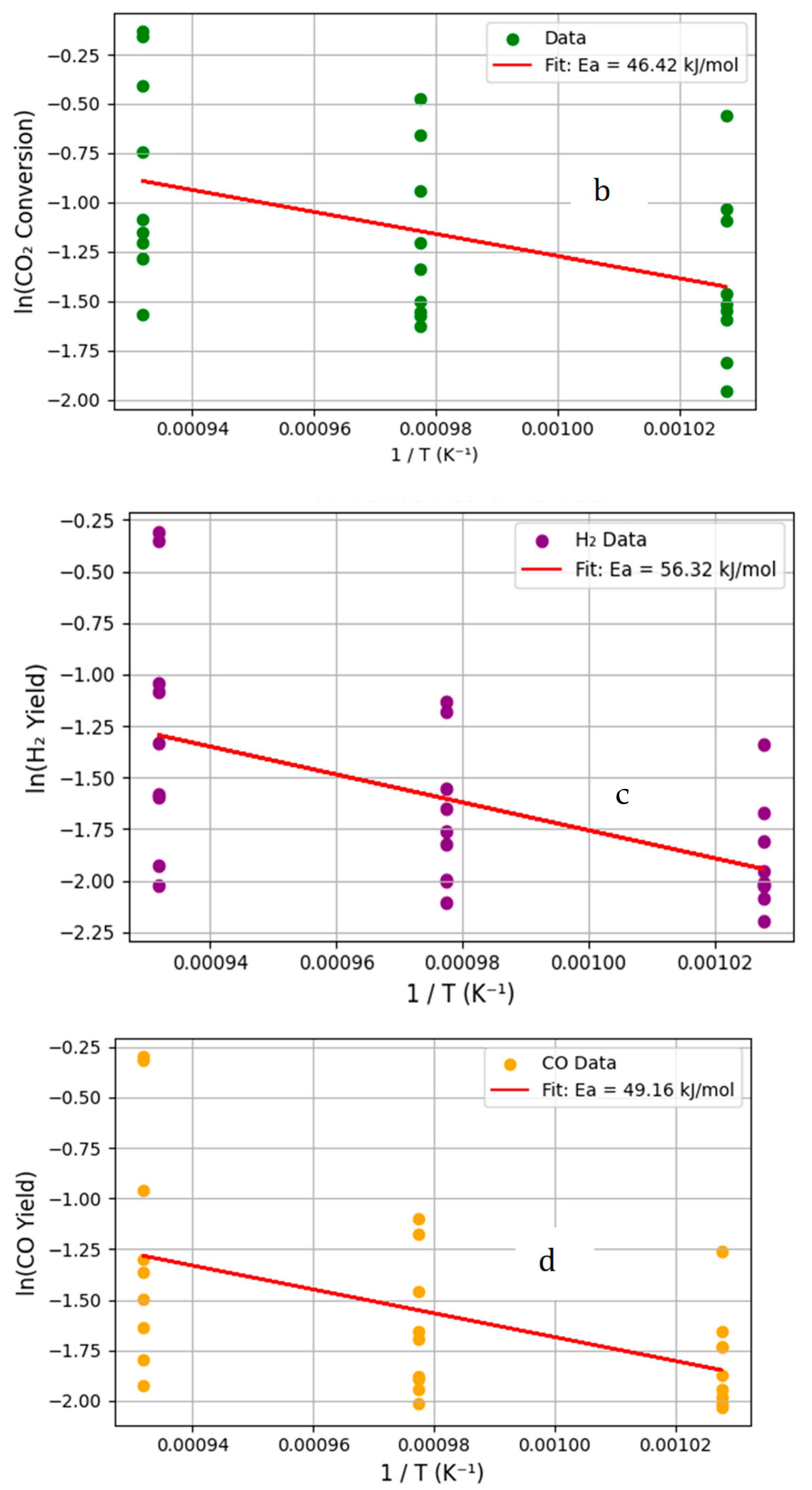 2 feed ratios. The activation energy estimates (42–46 kJ mol