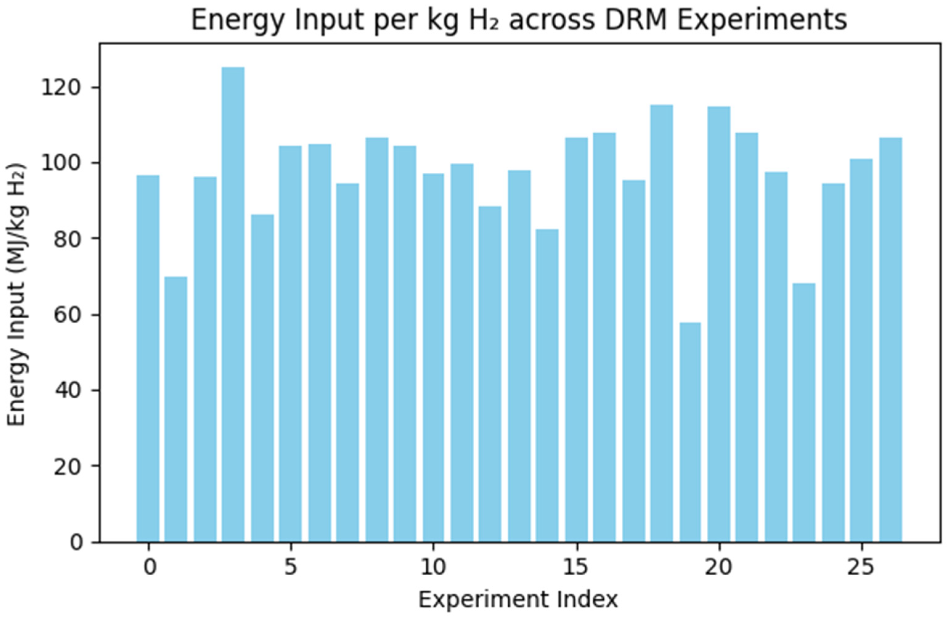Including these effects—using Ecoinvent or GREET emission factors—will enable sensitivity and scenario analyses linking process simulation with techno-economic optimization. Future work should couple the experimental DRM dataset with plant-scale energy models to produce comprehensive cradle-to-grave inventories.