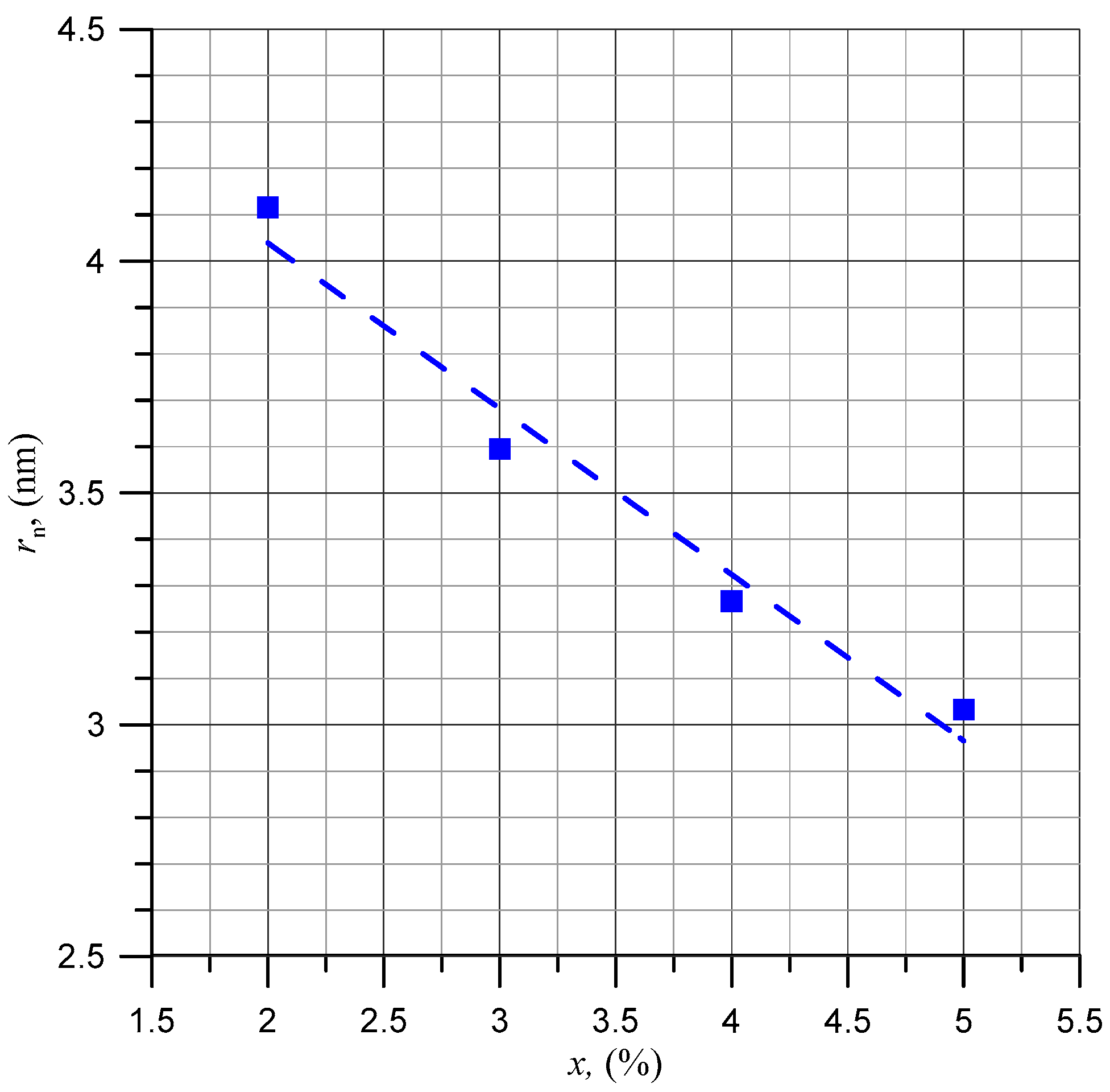 The third parameter determining conductivity due to electron tunnelling is the so-called Bohr radius, RB, which appears in Equations (1) and (2). The Bohr radius RB defines the rate of decay of the square of the electron wave function outside the three-dimensional potential well, described by the first exponential in Equations (1) and (2). The larger the value of RB, the greater the distance over which the electron can tunnel.