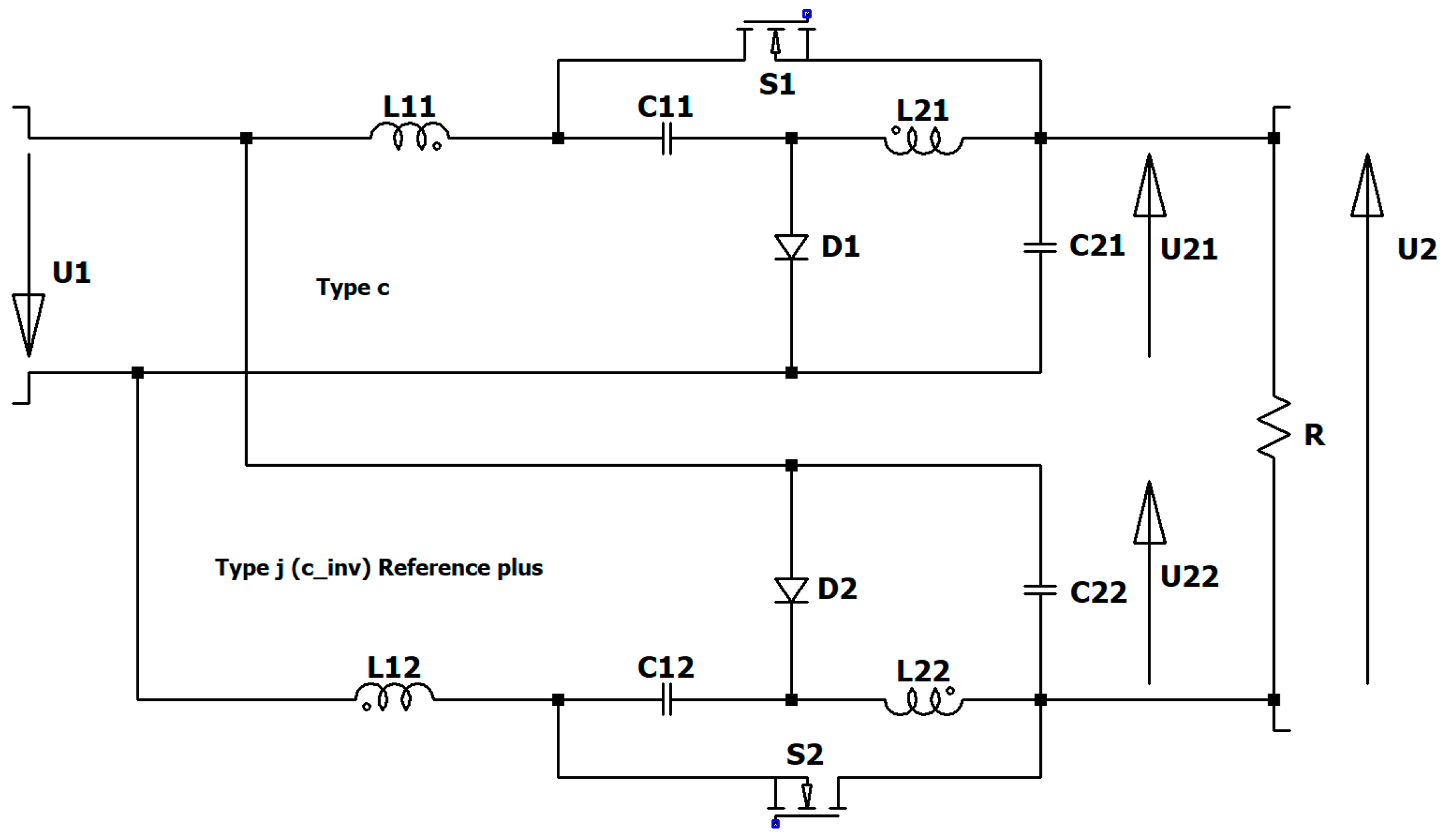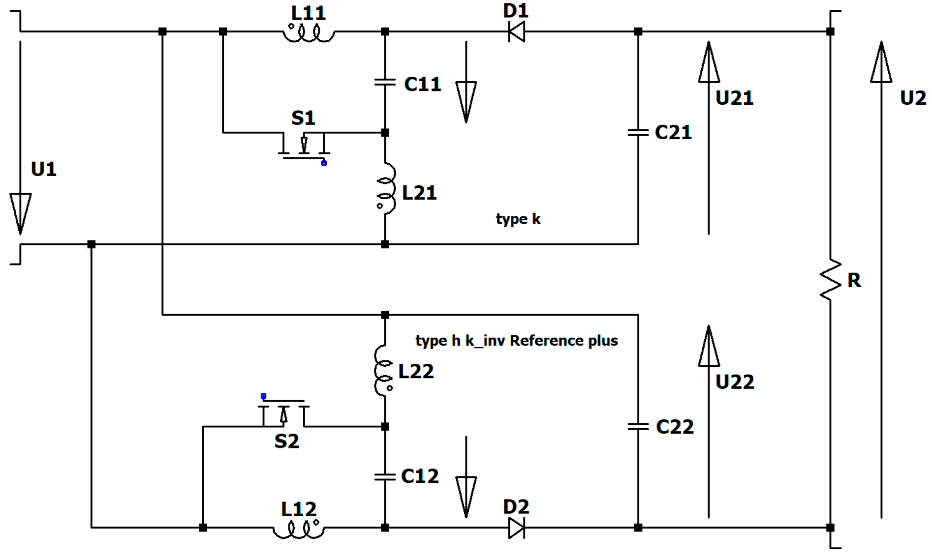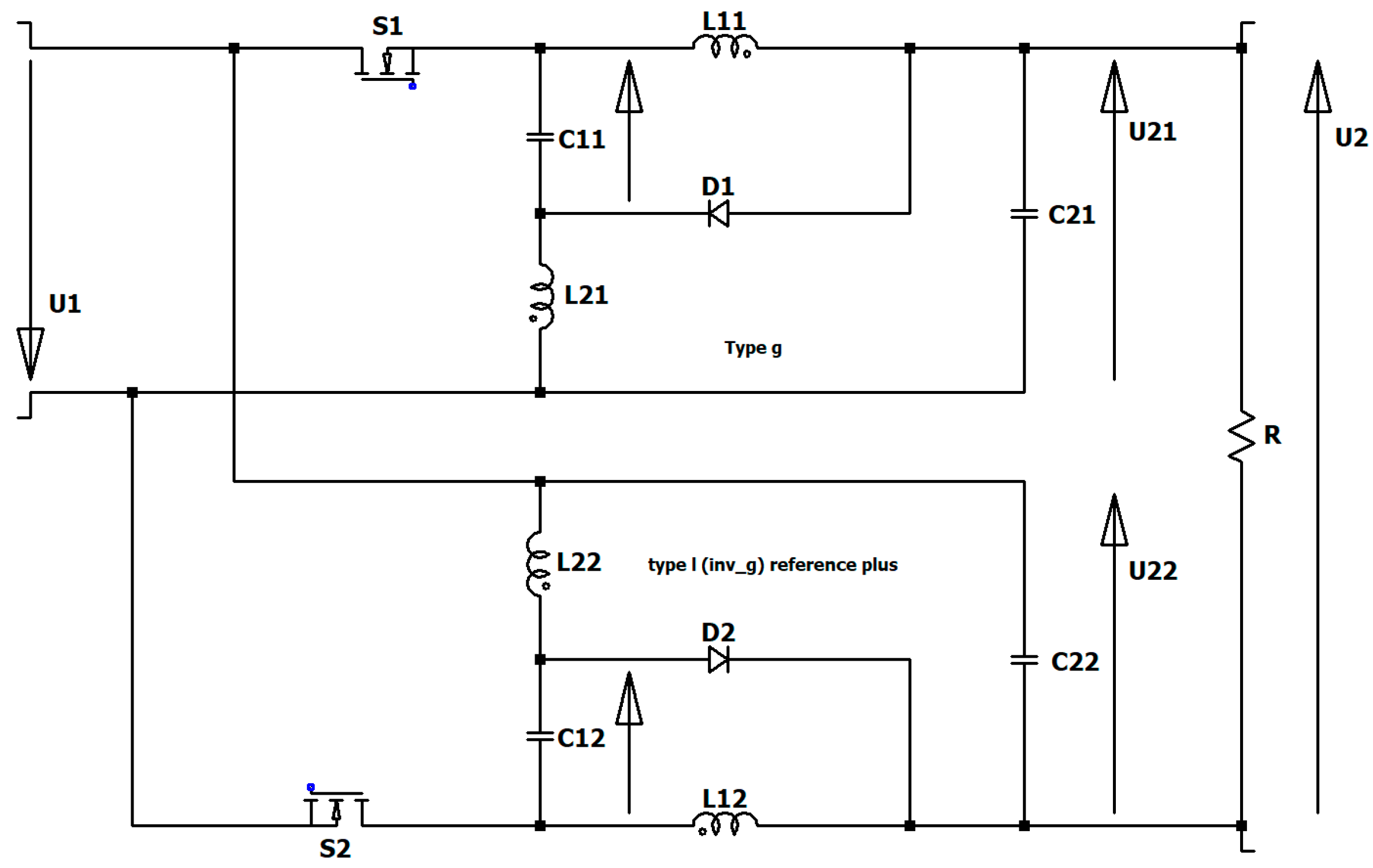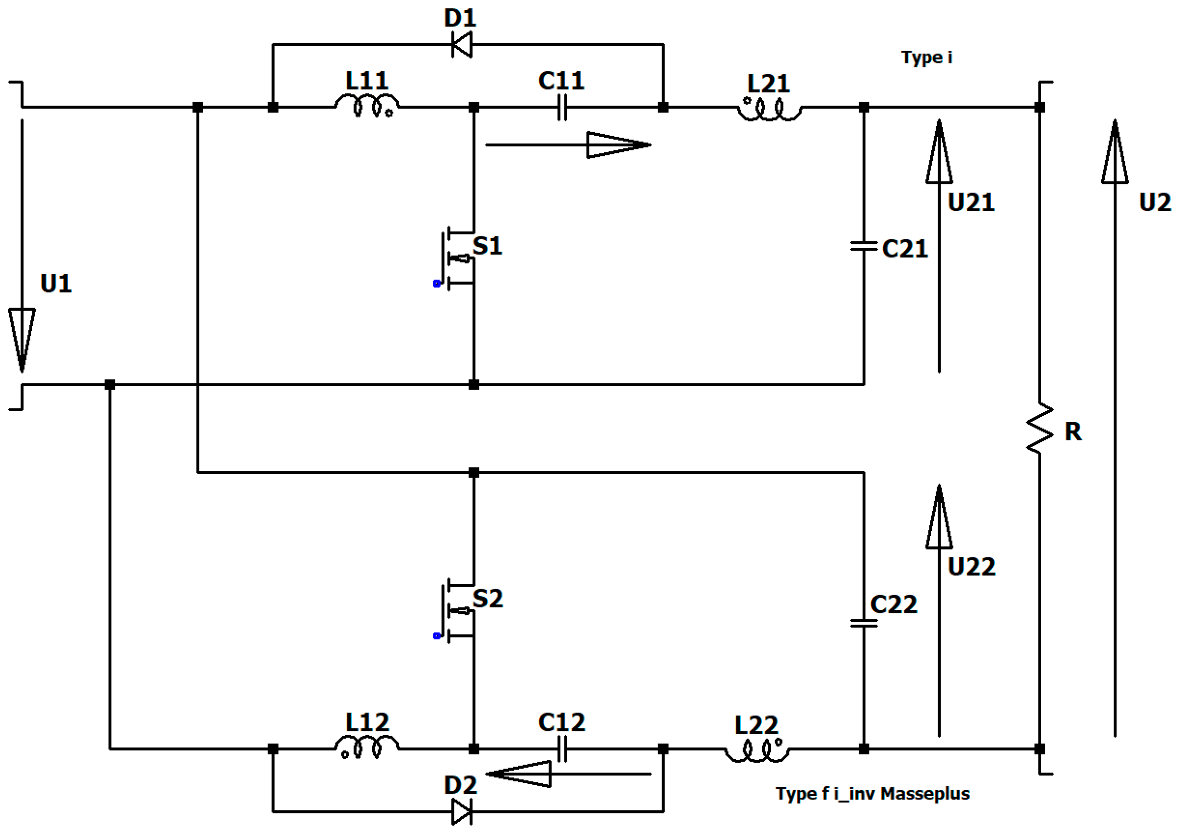 Circuit diagram of the floating two-stage inverting Boost converter type I.