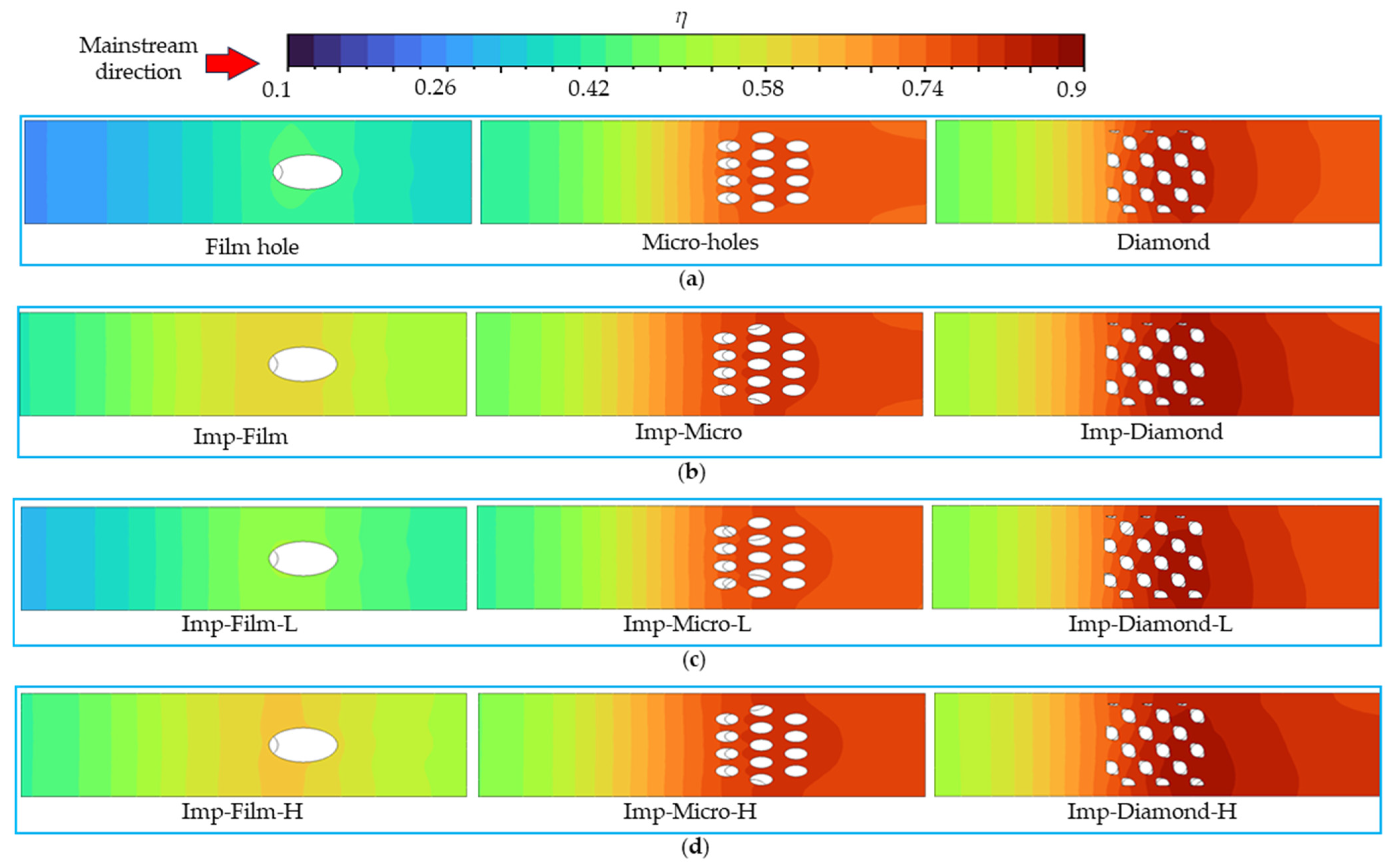 | Film hole | A single hole with a diameter of 0.9 mm | 1.27 | 5.06 | 4.0 |