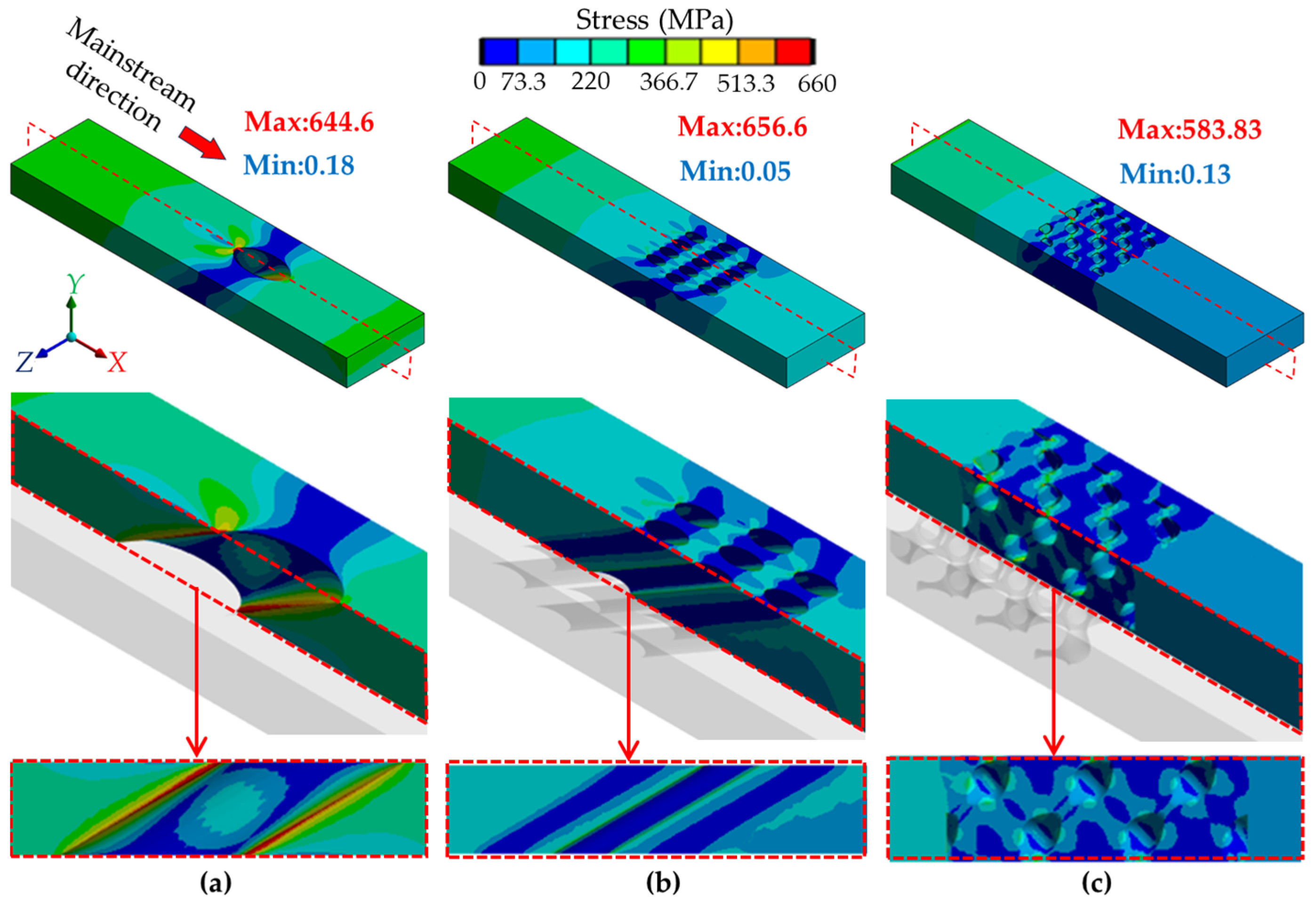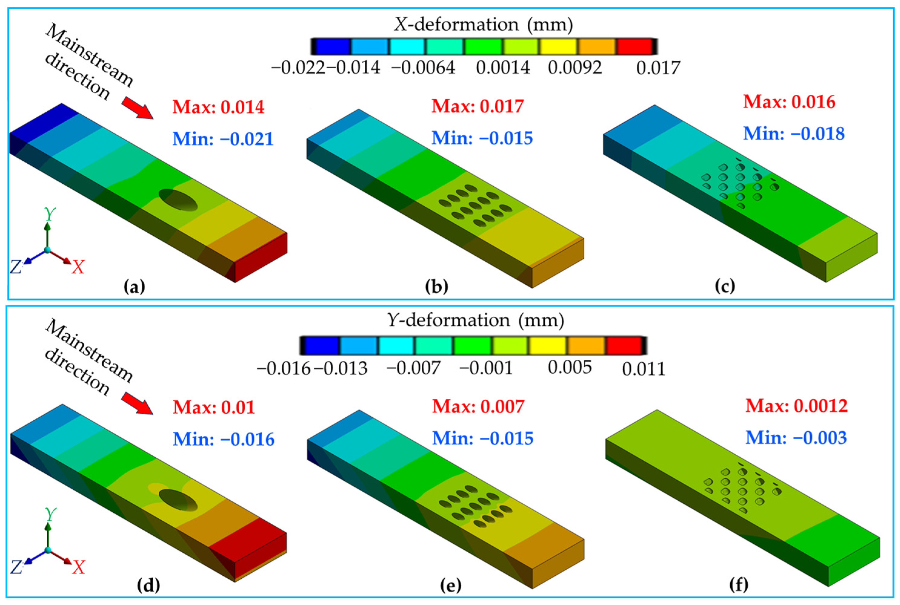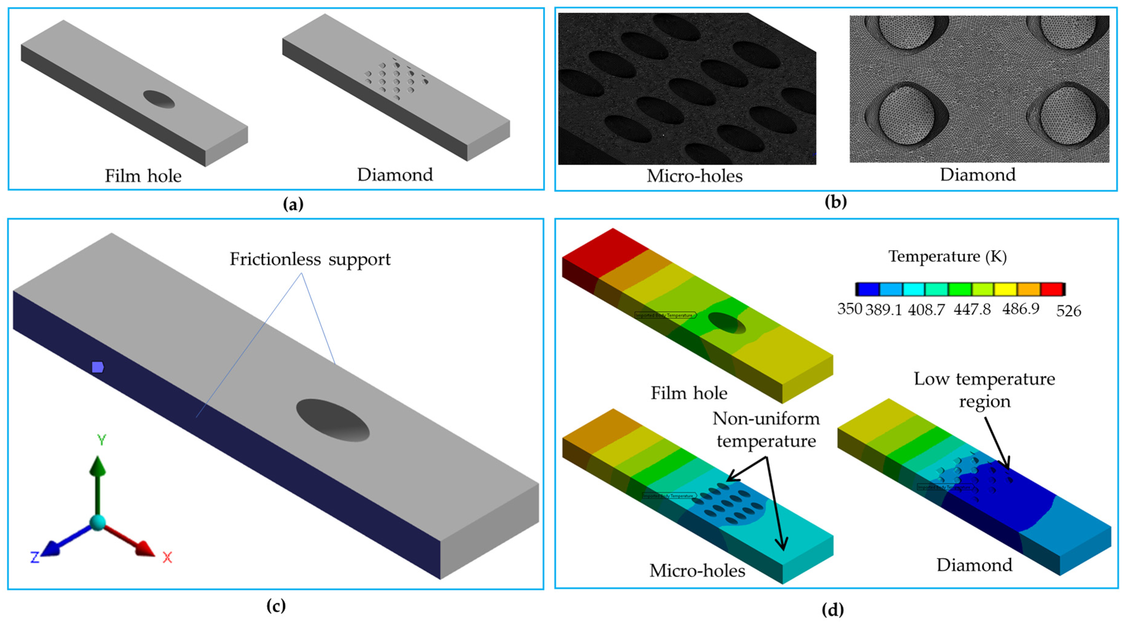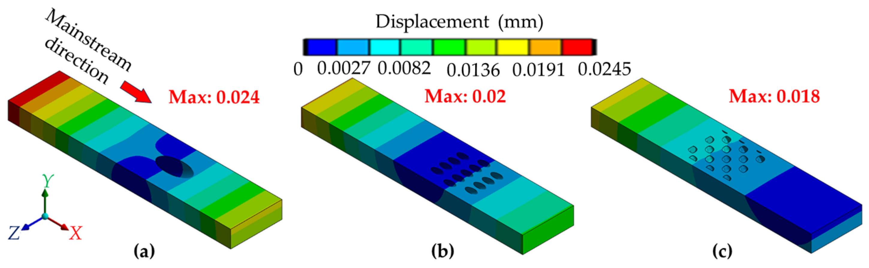 - Wang, S.; Li, X.; Ren, J. Film Cooling and Stress Concentration Properties of the Backward-Diffusion Elliptical Hole. Appl. Therm. Eng. 2024, 244, 122713. [Google Scholar] [CrossRef]