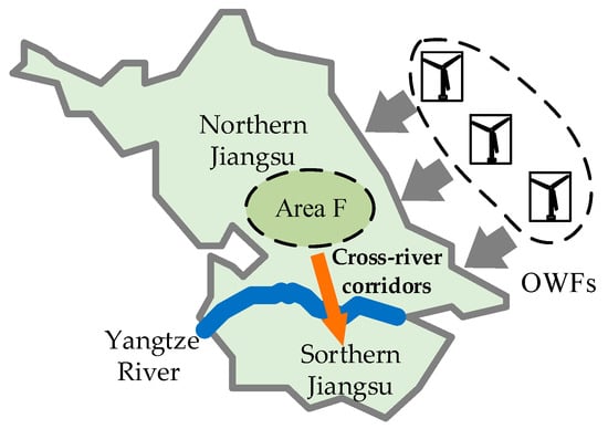 Geographically, Jiangsu Province is bisected by the Yangtze River, forming distinct northern and southern power grids. The northern power grid is characterized by a concentrated generation capacity but bears a relatively low local load, whereas the southern power grid is a major load center with less local generation. This structural imbalance necessitates the transmission of surplus power from the northern power grid to the southern power grid via cross-river transmission corridors. Complicating this situation, offshore wind farms (OWFs) of Jiangsu Province are, due to geographical constraints, primarily integrated into the northern power grid. The large-scale injection of wind power will thus exacerbate the existing power flow imbalance, posing more severe challenges to the coastal power grid in northern Jiangsu, particularly in terms of transmission congestion under high wind generation conditions.