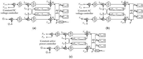 Basic control strategy of MMC stations: (a) Control strategy of MMC1; (b) Control strategy of MMC2; (c) Control strategy of MMC3.