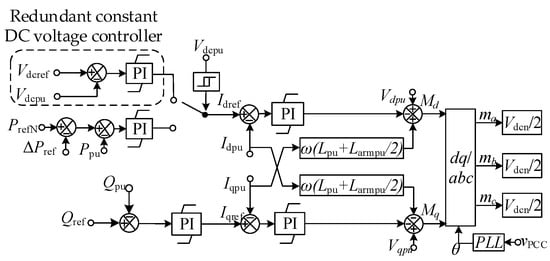 Based on (A10), a PI regulator is used to control the AC voltage amplitude, generating the reference values for the converter voltages. This approach ensures stable and balanced AC voltage output under varying load conditions.