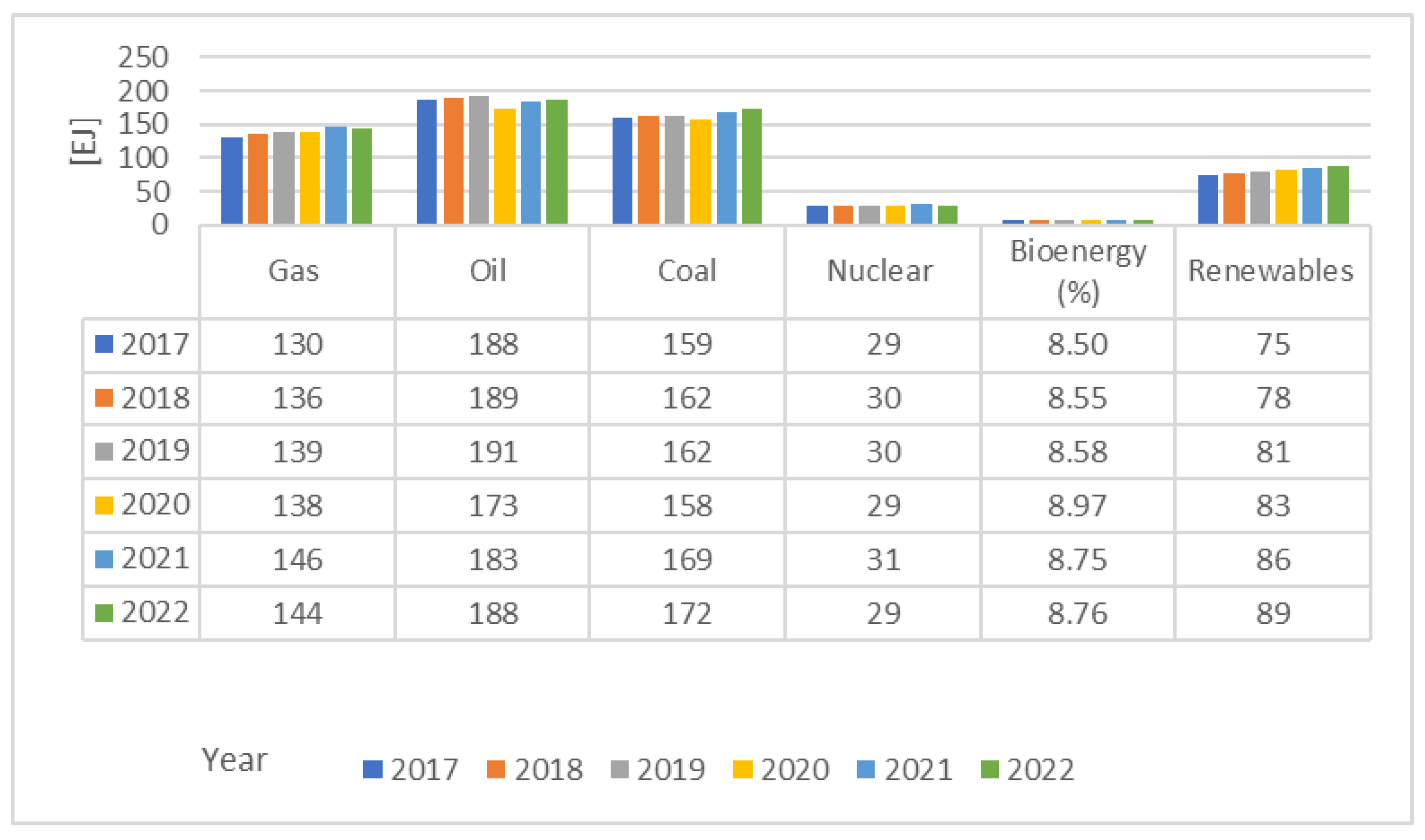 | Year | Bioenergy | Hydro | Solar | Wind | Other Renewables |