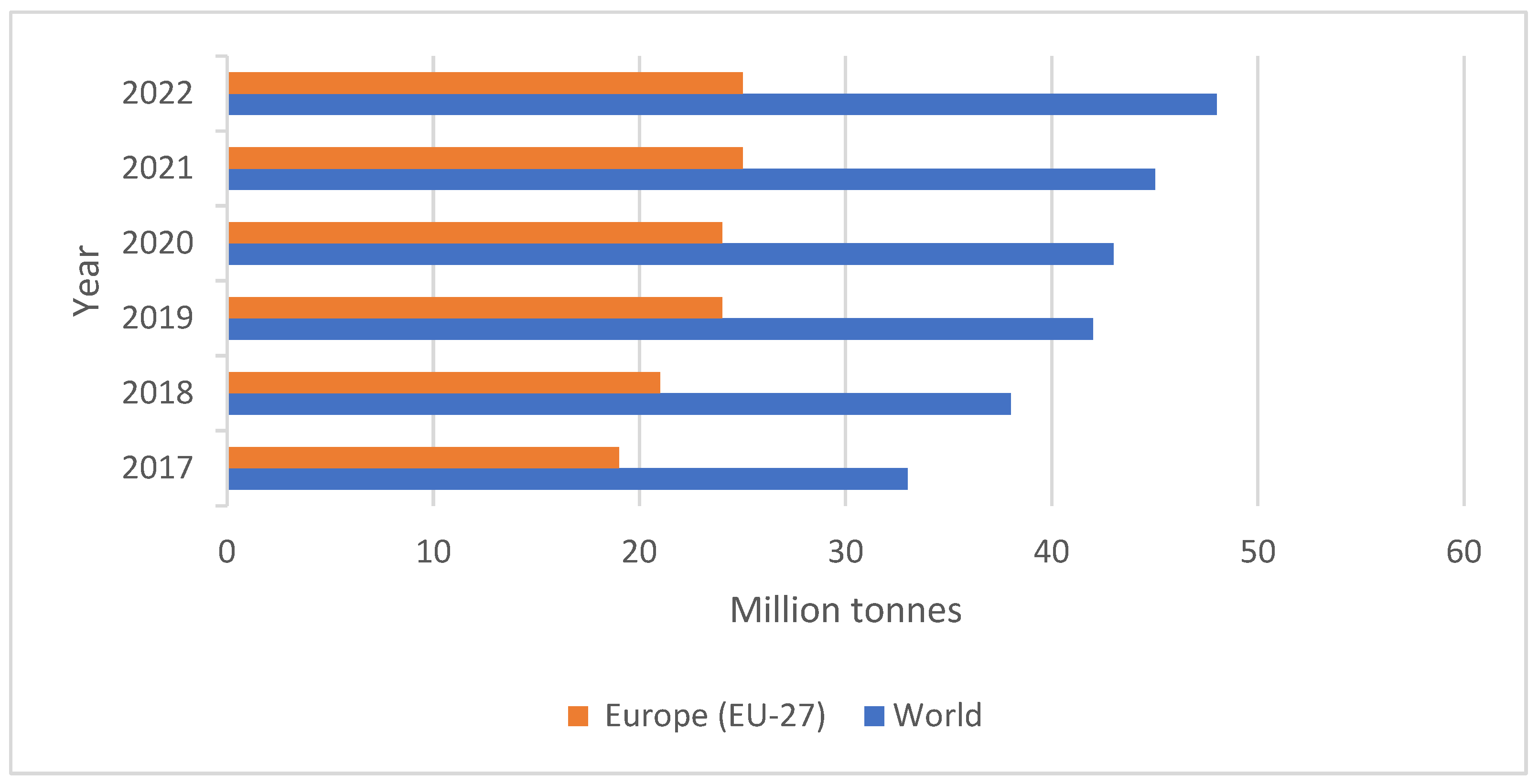 - Global Bioenergy Statistics Report, 11th ed.; World Bioenergy Association: Stockholm, Sweden, 2024; Available online: https://www.worldbioenergy.org/uploads/241023_GBS_Report.pdf (accessed on 27 November 2025).
