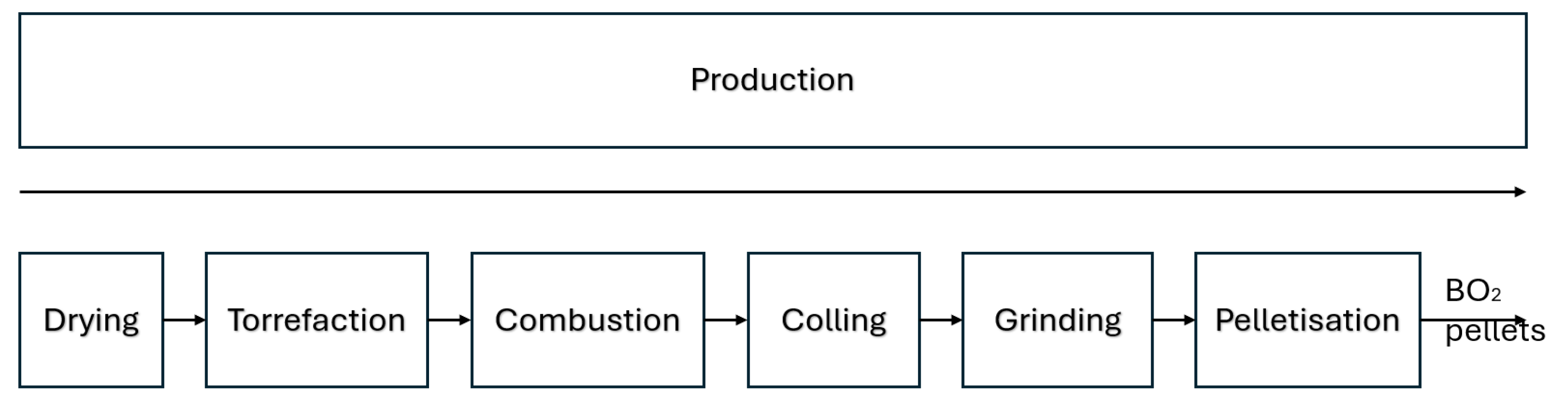 | Raw material moisture content | Wood chips: 5–14% m.c., sawdust: up to 55% m.c. | Optimal humidity minimizes degradation and spontaneous combustion | Store raw materials in silos or closed halls. | |