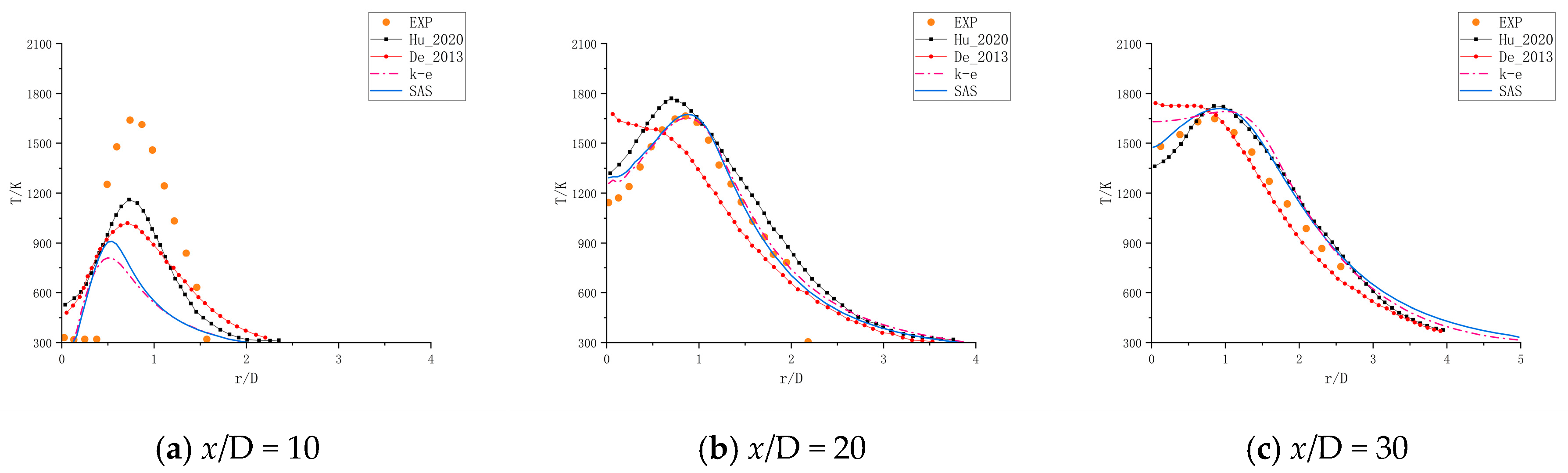 - Pan, G.; Zheng, H.T.; Zhang, Z.B. Numerical investigation of combustion flow fields in a combustor fueled with reformed fuel and kerosene. J. Propuls. Technol. 2014, 35, 1102–1109. (In Chinese) [Google Scholar] [CrossRef]
