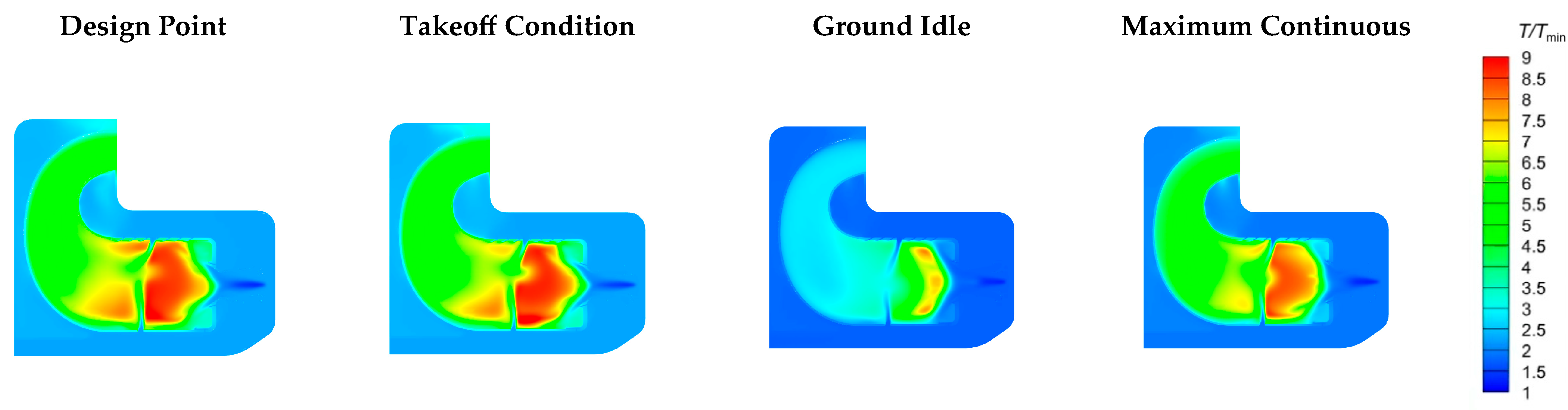 | Parameter | Design Point | Takeoff Condition | Ground Idle | Maximum Continuous |