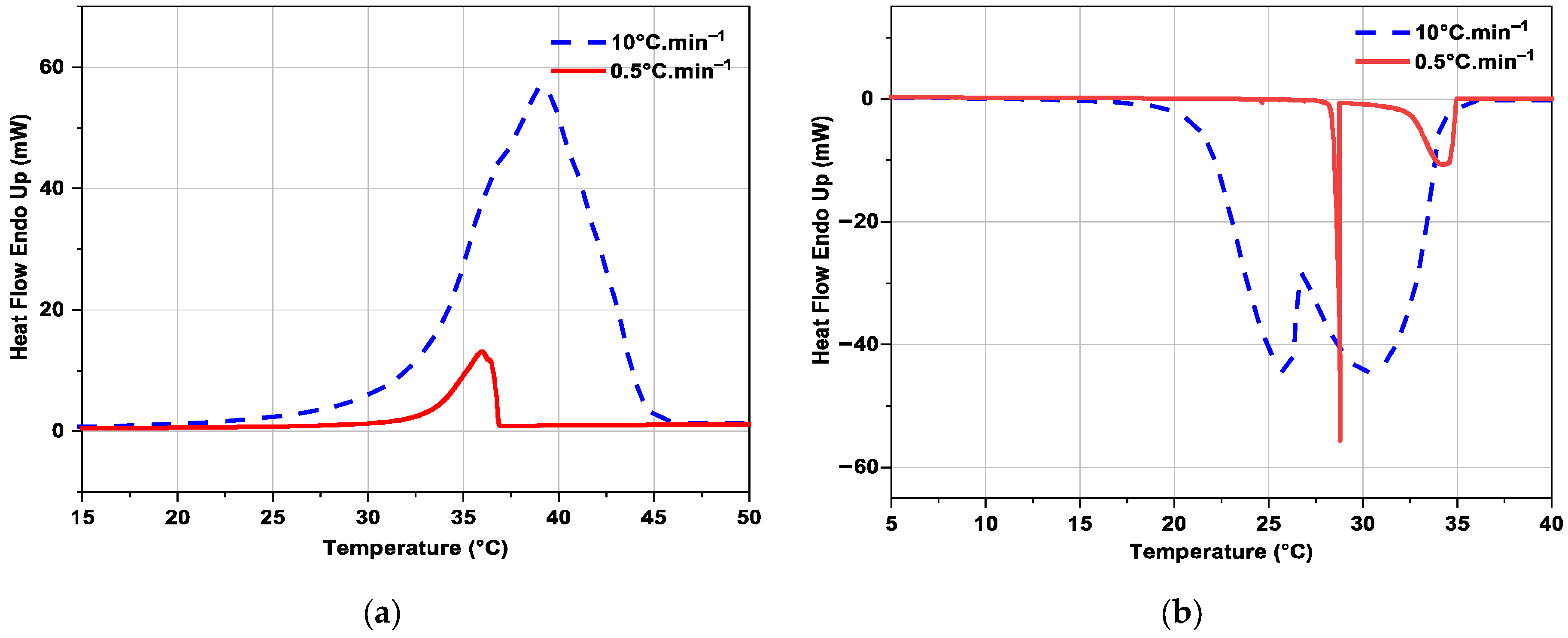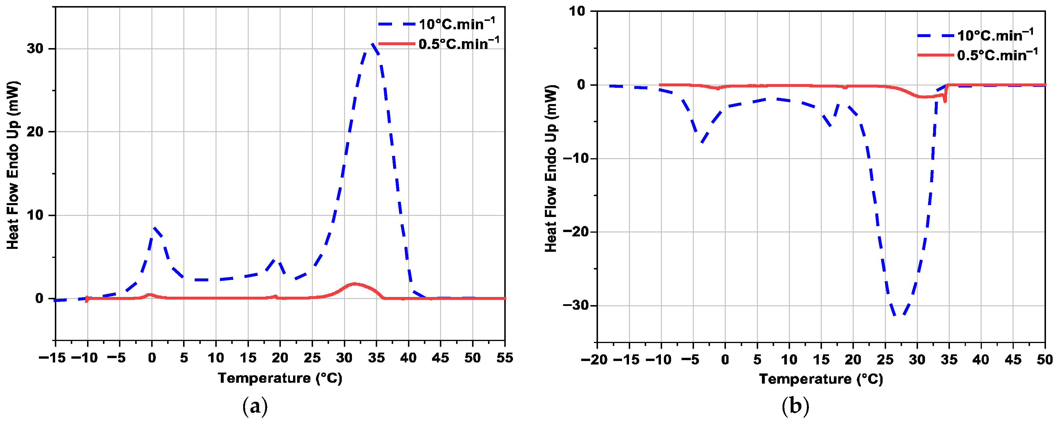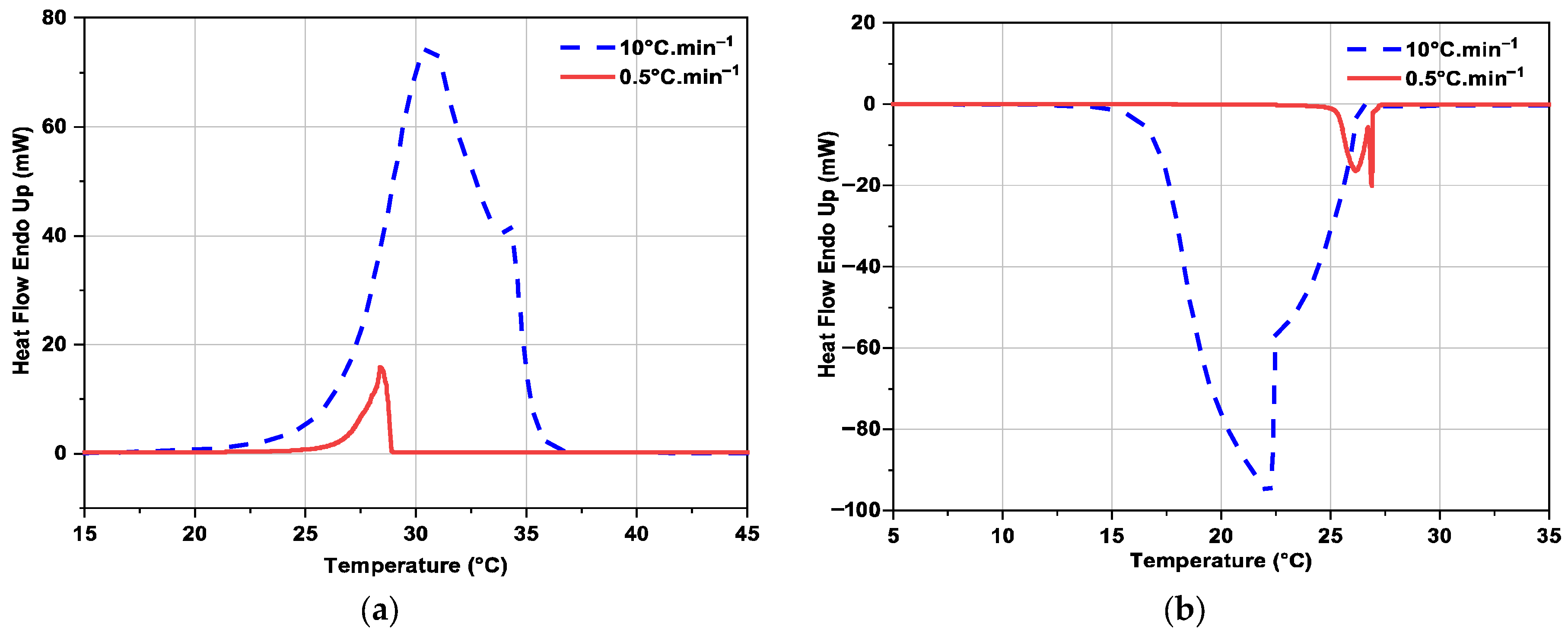 3.2.3. Influence of Heating or Cooling Rate on DSC Curves