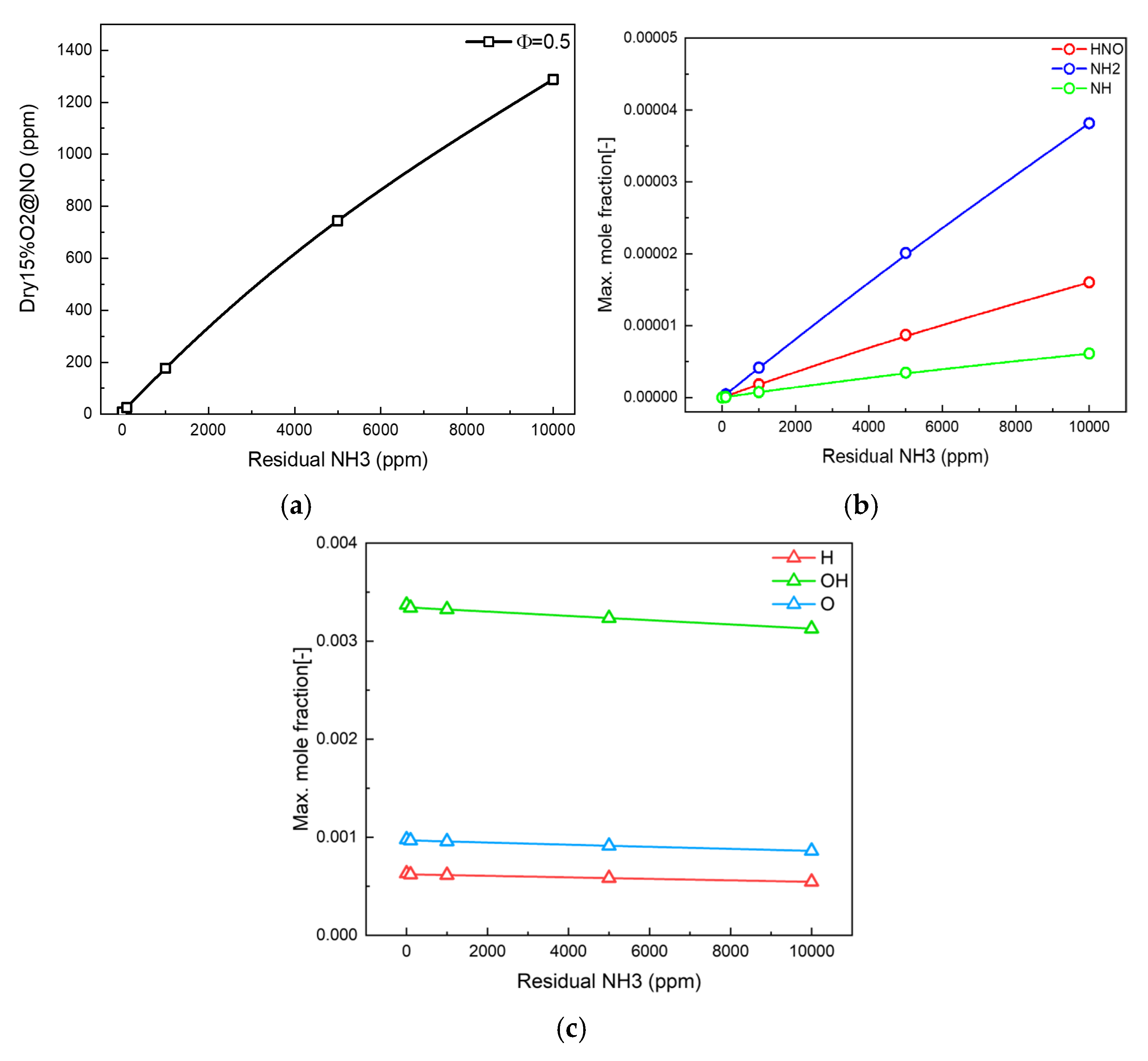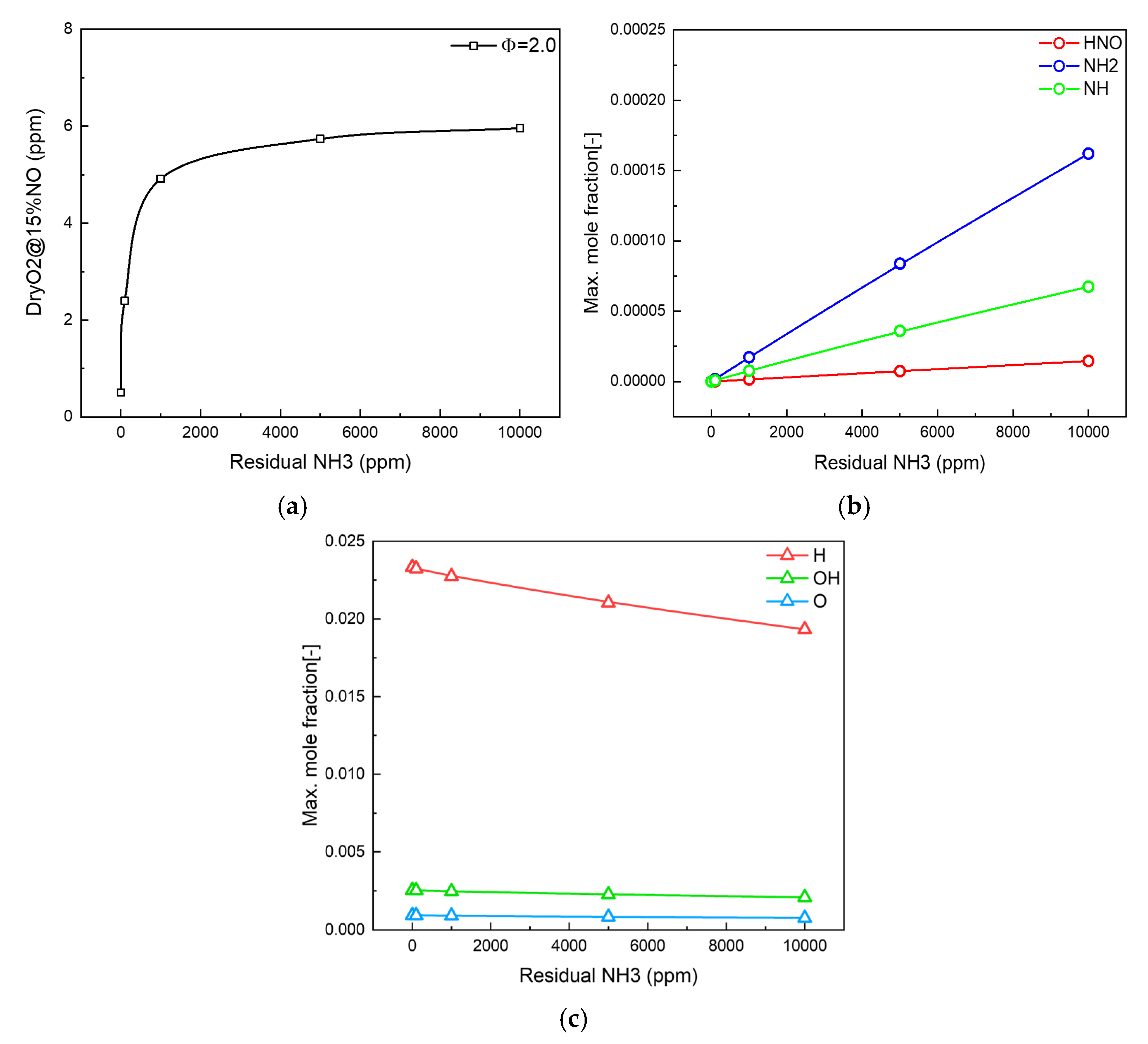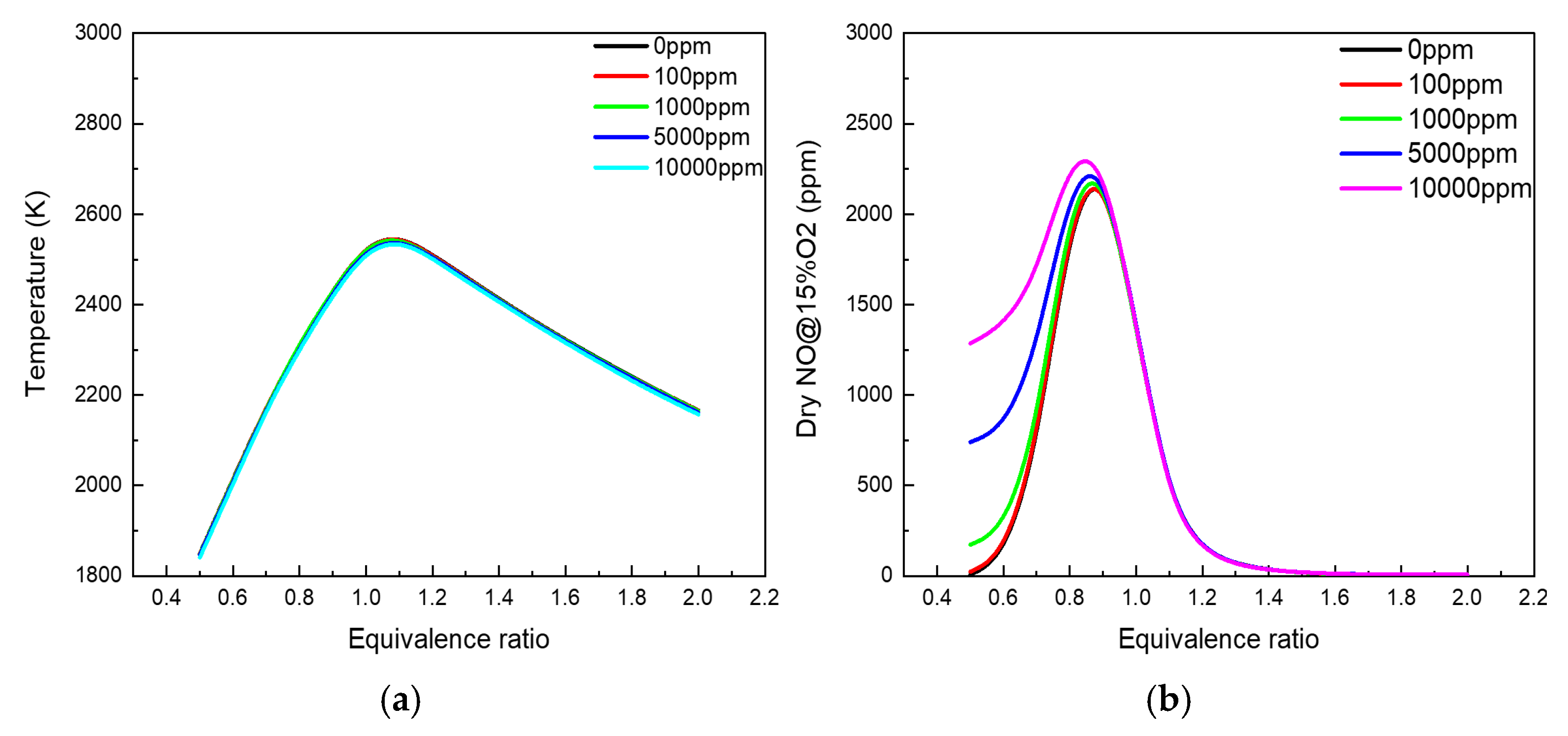 3.2. Residual Ammonia’s Effects on NO Formation in Rich Flames