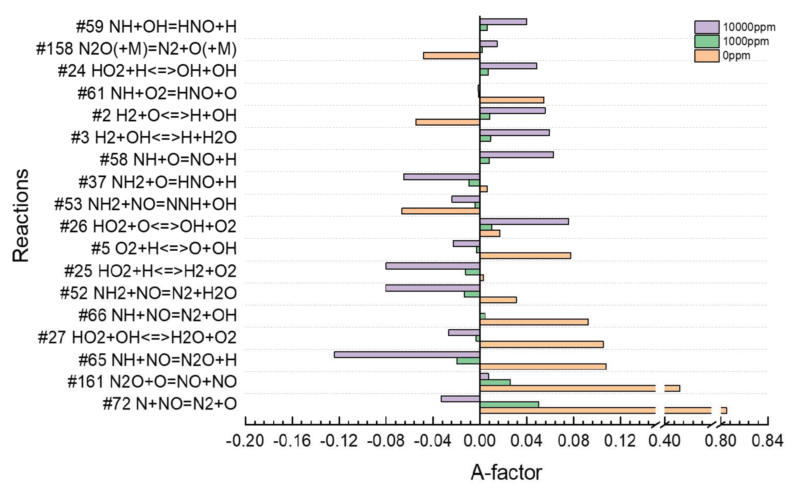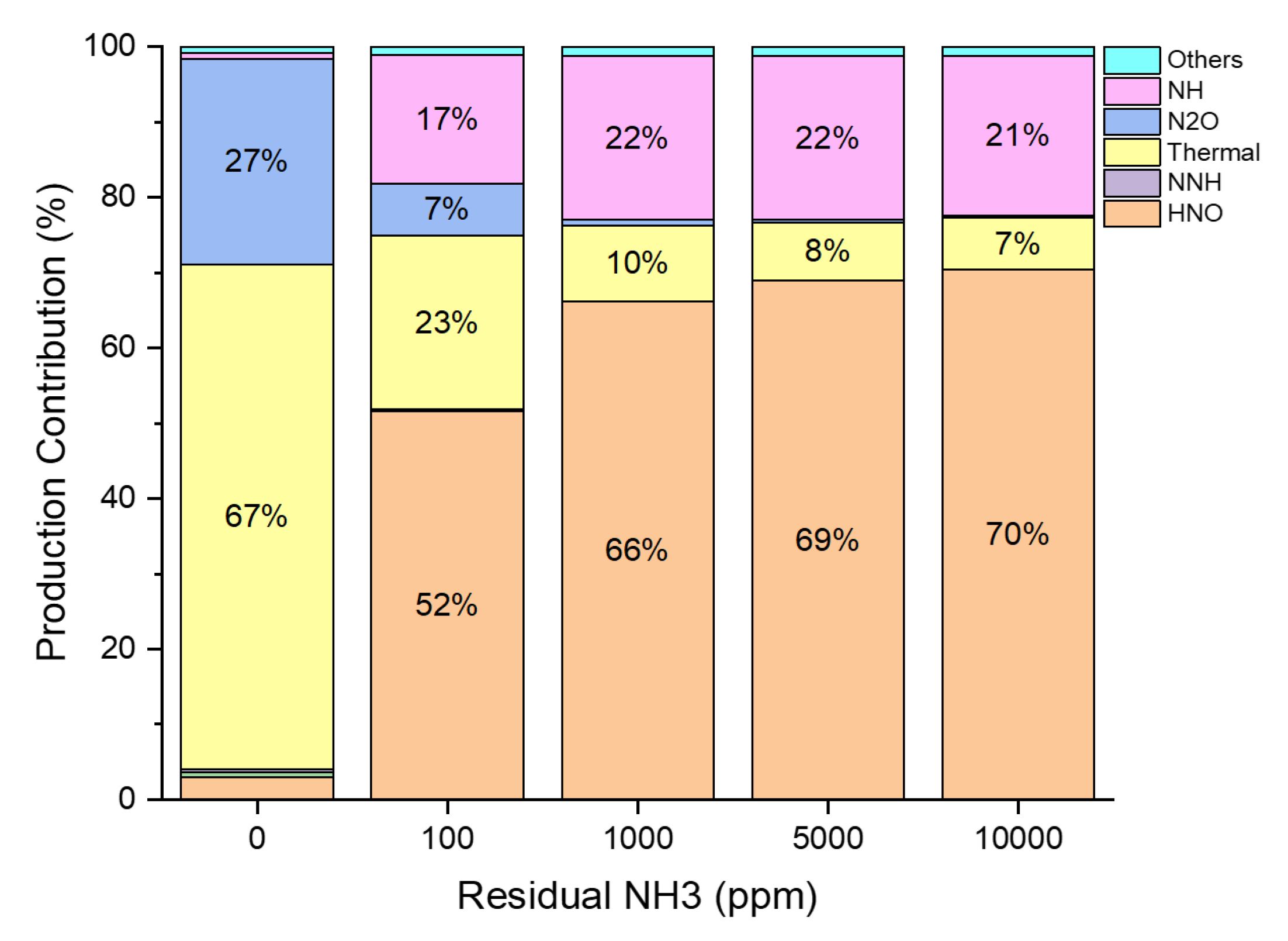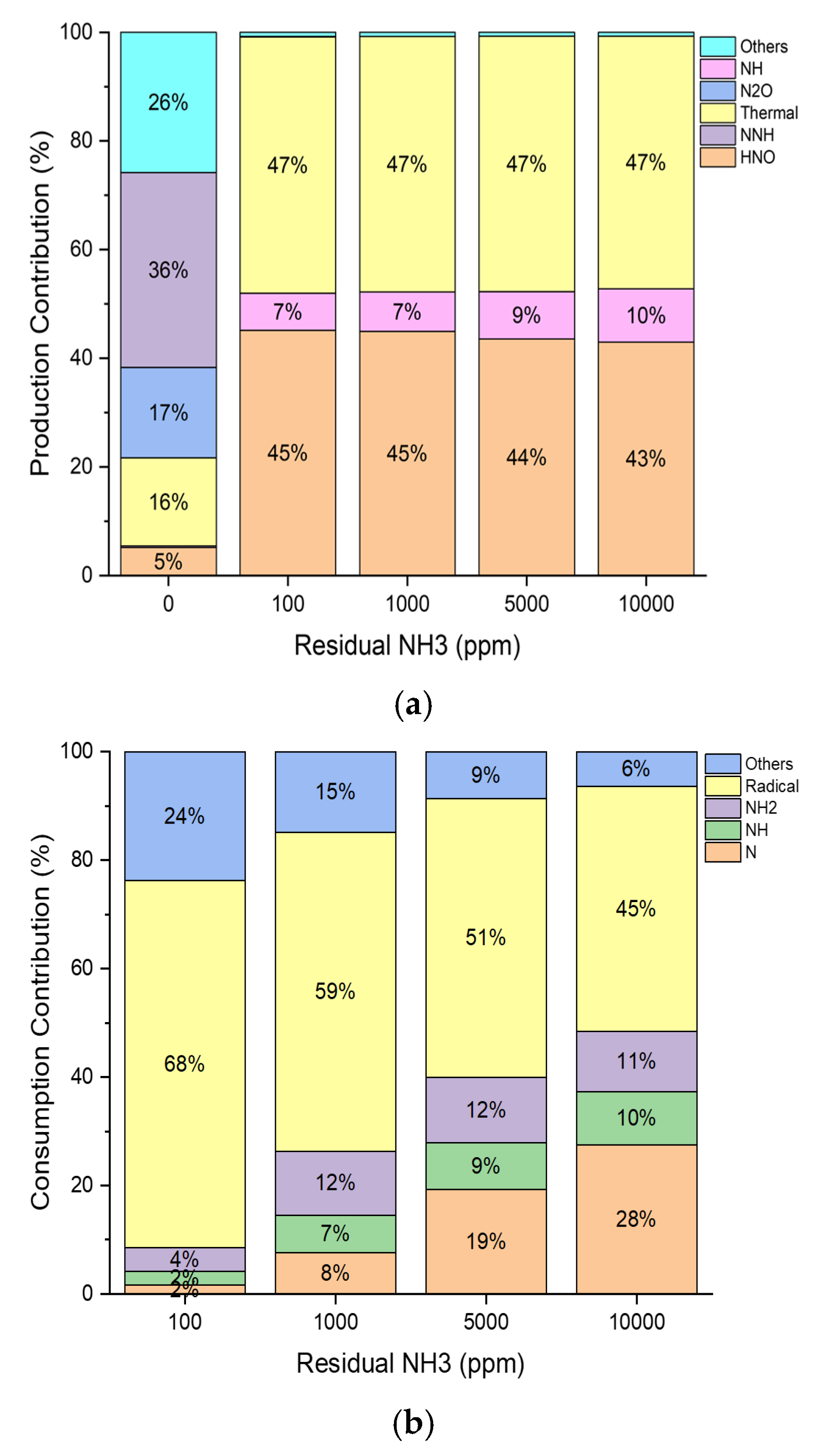 3.2. Residual Ammonia’s Effects on NO Formation in Rich Flames