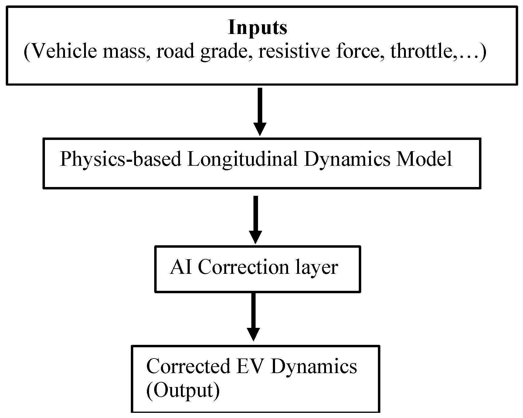 Rather than replacing physics-based models, AI complements them through hybrid or physics-informed ML frameworks. In such systems, physical laws provide structural priors or constraints, ensuring interpretability and physical consistency, while AI captures residual patterns unexplained by first-principles models. For instance, AI can learn correction functions for empirical losses in electric drivetrains or thermal dissipation, enhancing both accuracy and generalization.