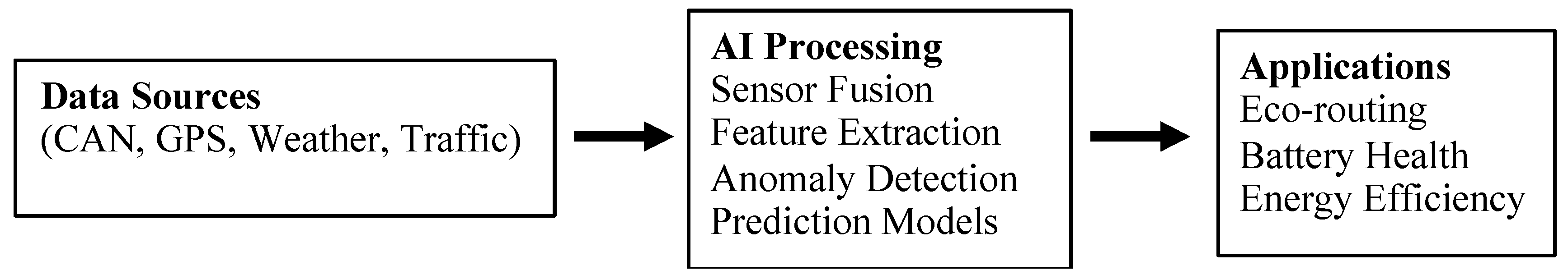 In Figure 1, the AI-based framework integrates vehicle sensor data, driving patterns, and environmental factors to predict energy consumption and optimize efficiency.