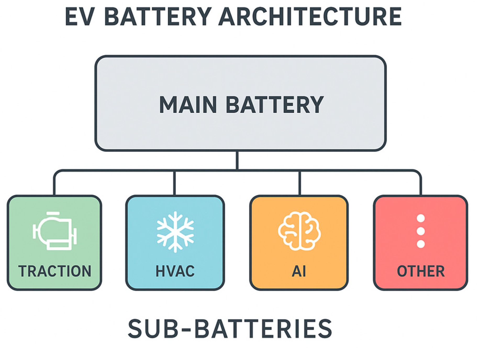 Global (Vehicle Level)Energy Orchestration (EO)A central AI controller dynamically reallocates power among sub-batteries based on driving context, ambient conditions, and mission goals.