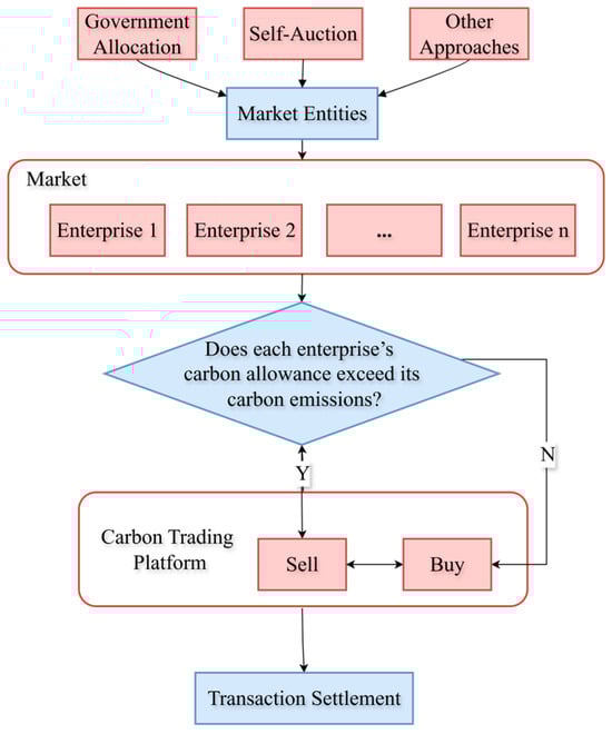The VPP optimizes energy utilization and reduces carbon emissions through the centralized management of distributed renewable resources such as solar and wind power, together with energy storage systems. In the carbon trading market, this emission reduction can be monetized as carbon credits or emission allowances, providing additional revenue for the VPP. Within this framework, the VPP acts as a flexible energy management platform that can freely trade emission rights in the carbon market. The overall process is illustrated in Figure 2.