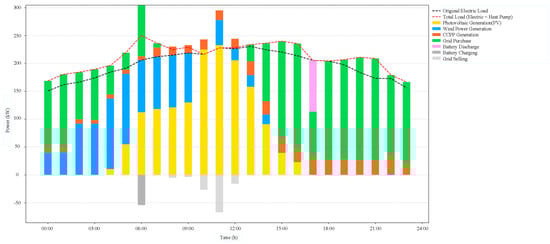The power balance and heat balance results of the VPP on a typical day, solved by the SAC-LAx, are shown in Figure 14 and Figure 15, respectively.