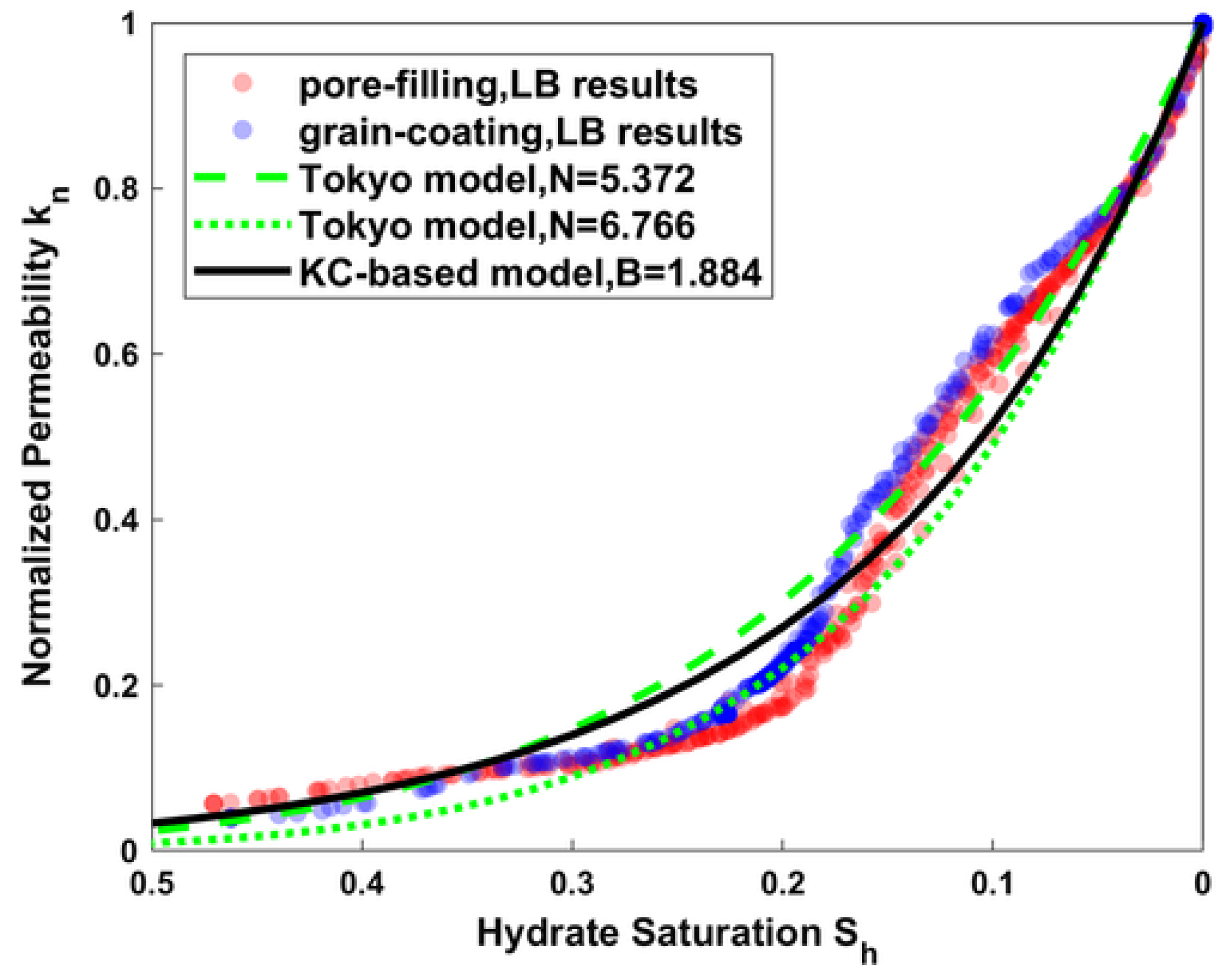- Hou, J.; Ji, Y.; Zhou, K.; Liu, Y.; Wei, B. Effect of Hydrate on Permeability in Porous Media: Pore-Scale Micro-Simulation. Int. J. Heat Mass Transf. 2018, 126, 416–424. [Google Scholar] [CrossRef]