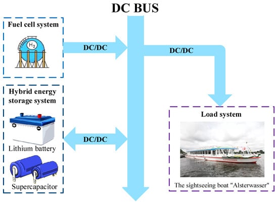 The schematic diagram of the fuel cell ship hybrid energy storage system.