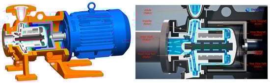Our research team has been conducting ongoing research related to the development of centrifugal pumps and valves for transporting liquid hydrogen. The most critical challenge in developing centrifugal pumps for transporting liquid hydrogen is minimizing heat transfer to the working fluid during operation. To achieve this, it is crucial to minimize internal heat generated due to flow loss of the working fluid during pump operation. To do this, we conducted research to optimize the design of the impeller and volute to minimize internal heat generation [9]. Furthermore, it is essential to minimize the heat transferred from the external environment to the liquid hydrogen, the working fluid, during operation. To this end, we adopted a magnetic drive centrifugal pump, which remotely drives the impeller instead of the impeller’s rotating shaft. This design prevents heat transfer from the motor shaft driving the impeller to the liquid hydrogen. Furthermore, all internal surfaces of the pump, including the impeller, which comes into direct contact with the liquid hydrogen, are insulated with Teflon, a cryogenic insulator.