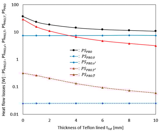 Changes in the heat flow losses due to the entropy production rates of the working fluid within the pump according to changes in the insulation thickness (tTef).