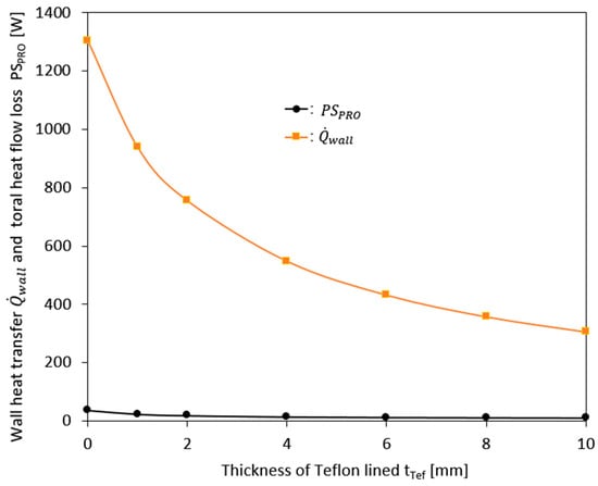 Changes in the total heat flow loss occurring inside the pump and heat transfer transmitted from the outside due to changes in insulation thickness (tTef).